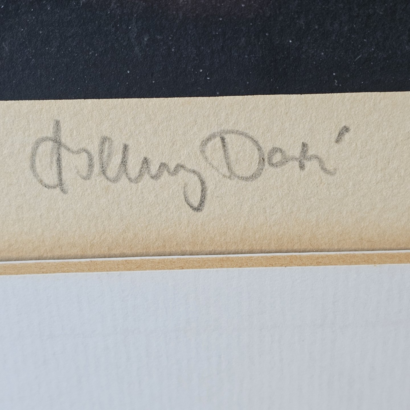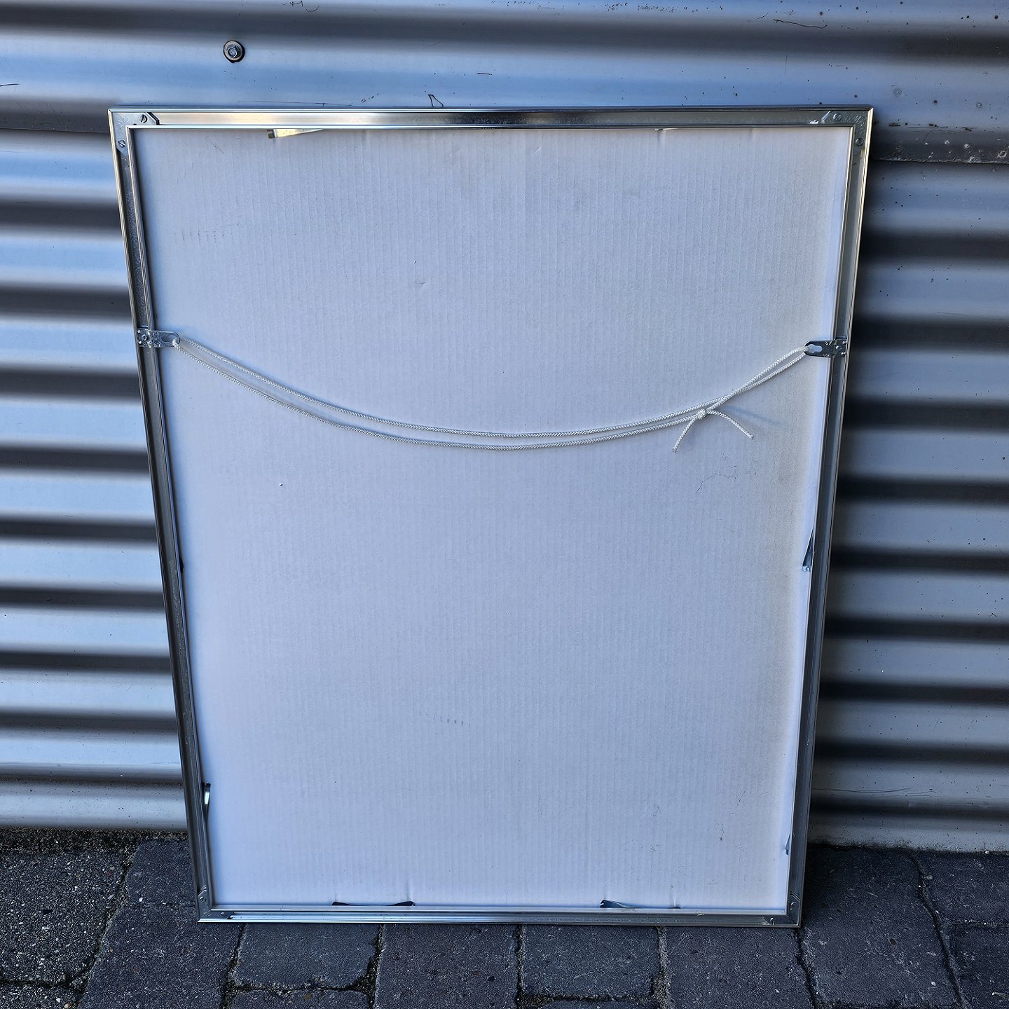 Litografi med abstrakt motiv og røde og gule nuancer monteret i metal rammeNr. 26/45