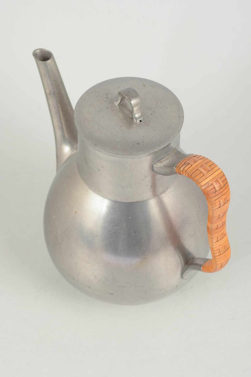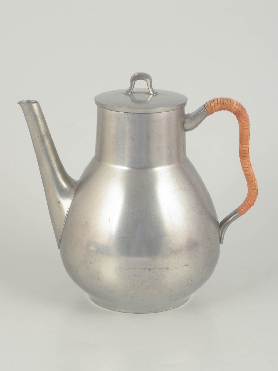Just Andersen, coffee pot in pewter.Coffee pot in pewter with wicker handle and an elegant rounded body, executed in a refined art deco design. Model 2661.