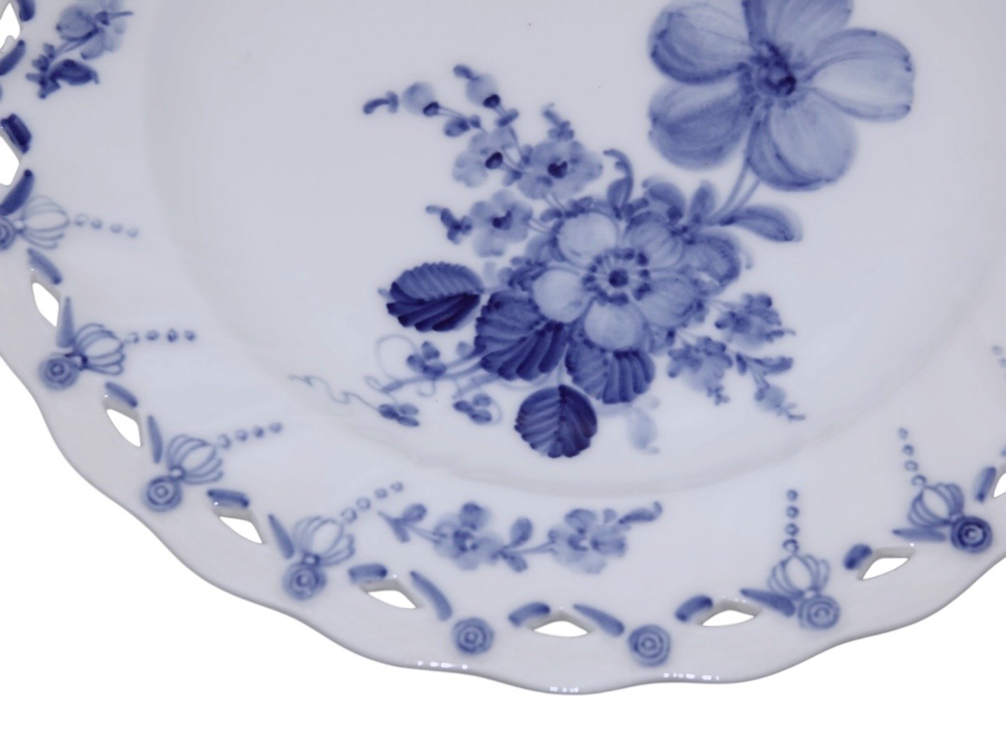 Royal Copenhagen Blue Flower Curved, round full lace plate that also can be used as a platter for round fruit basket number 10/1577.The factory mark shows, that this was made between 1898 and 1923.