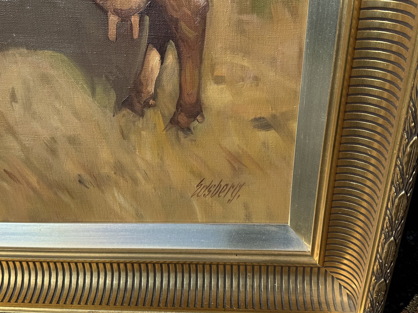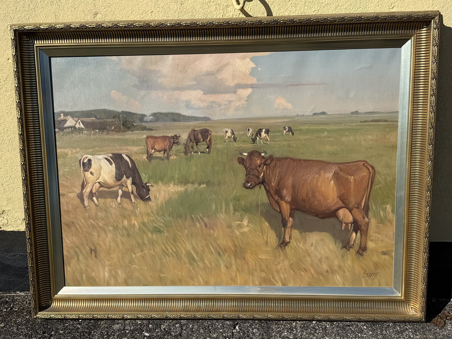 Knud Edsberg (1911-2003), Oil painting on canvas, cows in a field, Dimensions with frame 117x87 *Good condition with nice frame*Stock: 1