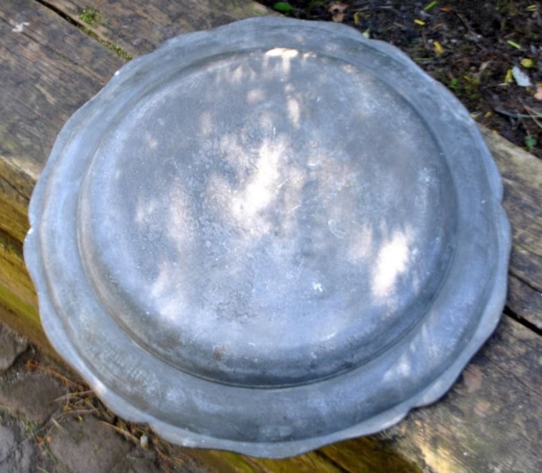 Large 18th century pewter rococo dish. Flared edge. Dia.: 37 cm. No visible stamps.Item number: 29153