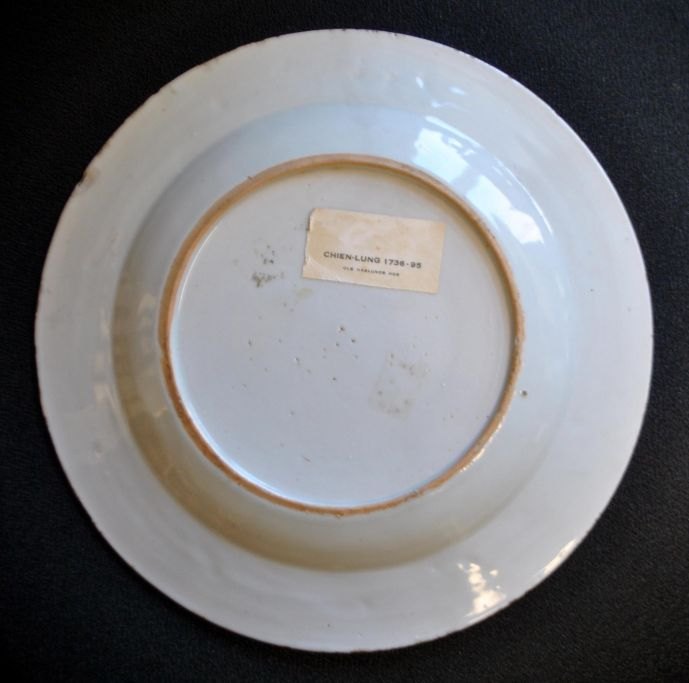 Chinese blue/white plate, 18th century. Chien-Lung. Hand-painted decorations of flowers and insects. Dia.: 23.5 cm.Small edge notch on the underside.