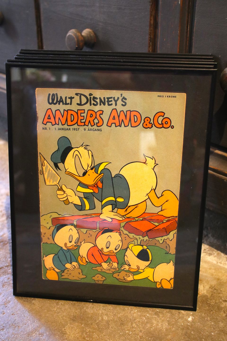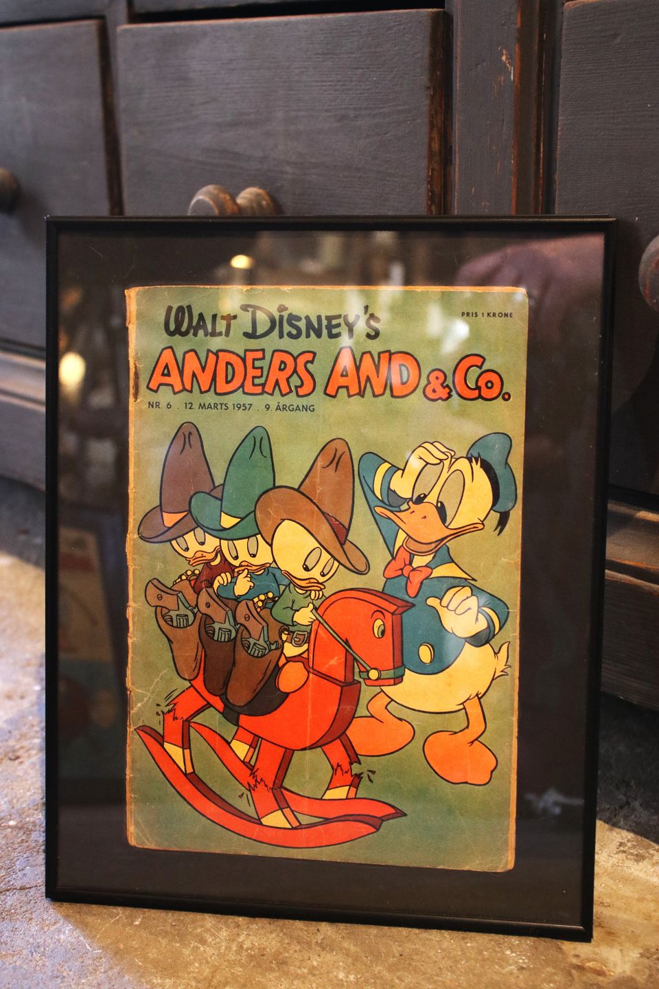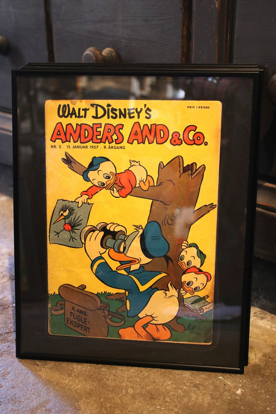 Decorative, old Walt Disney Donald Duck magazines from the year 1957. The entire Donald Duck magazine is framed in a black frame.30x24cm.