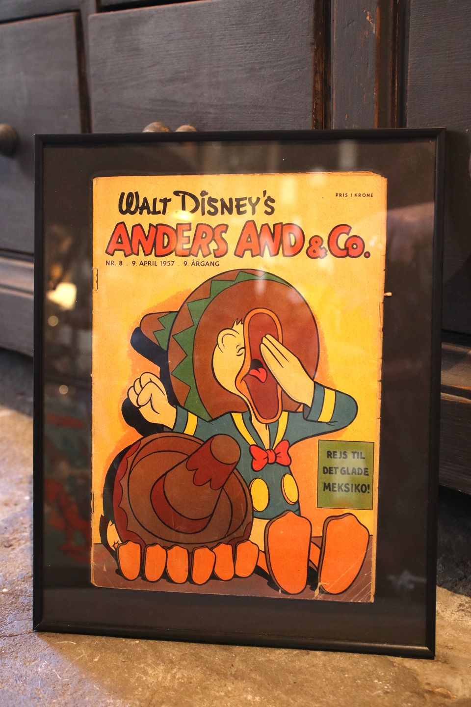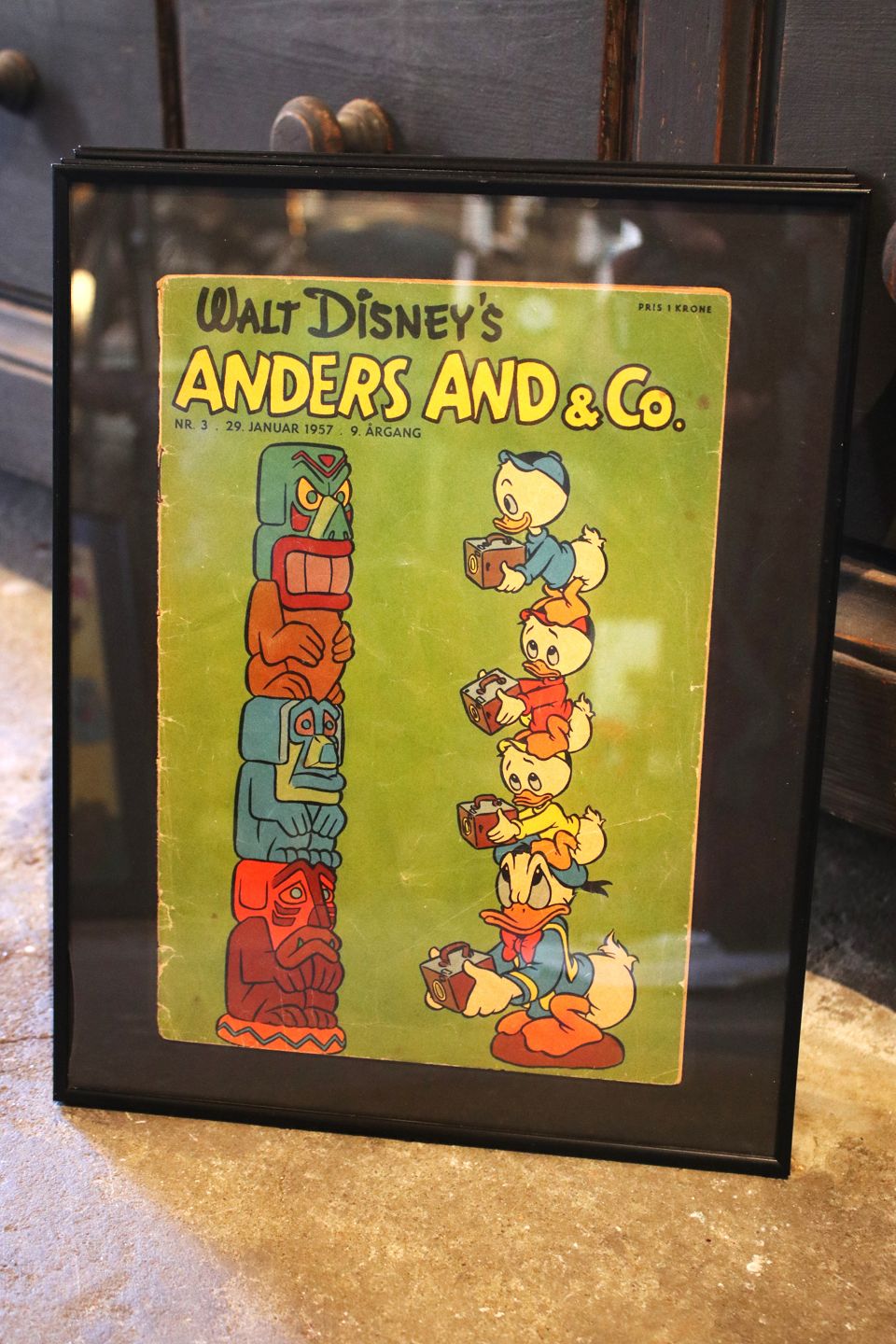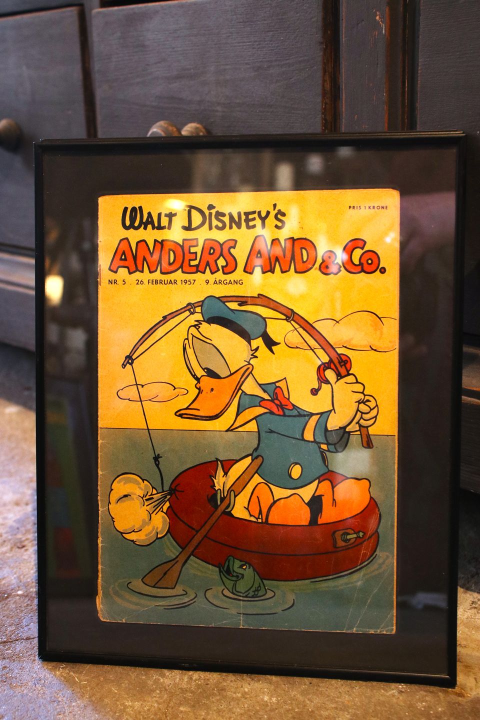 Decorative, old Walt Disney Donald Duck magazines from the year 1957. The entire Donald Duck magazine is framed in a black frame.30x24cm.