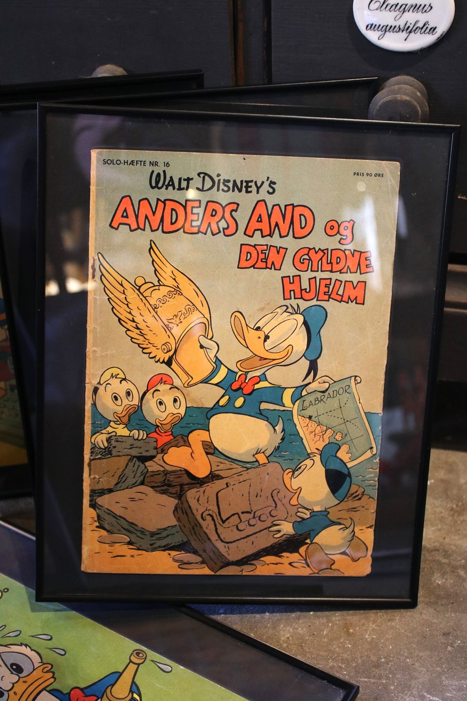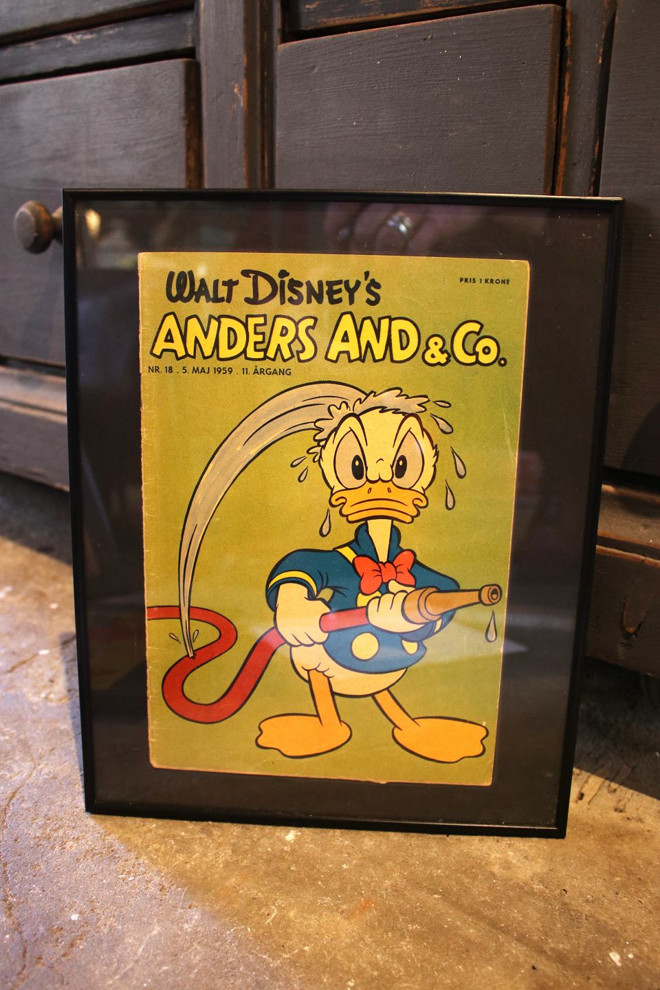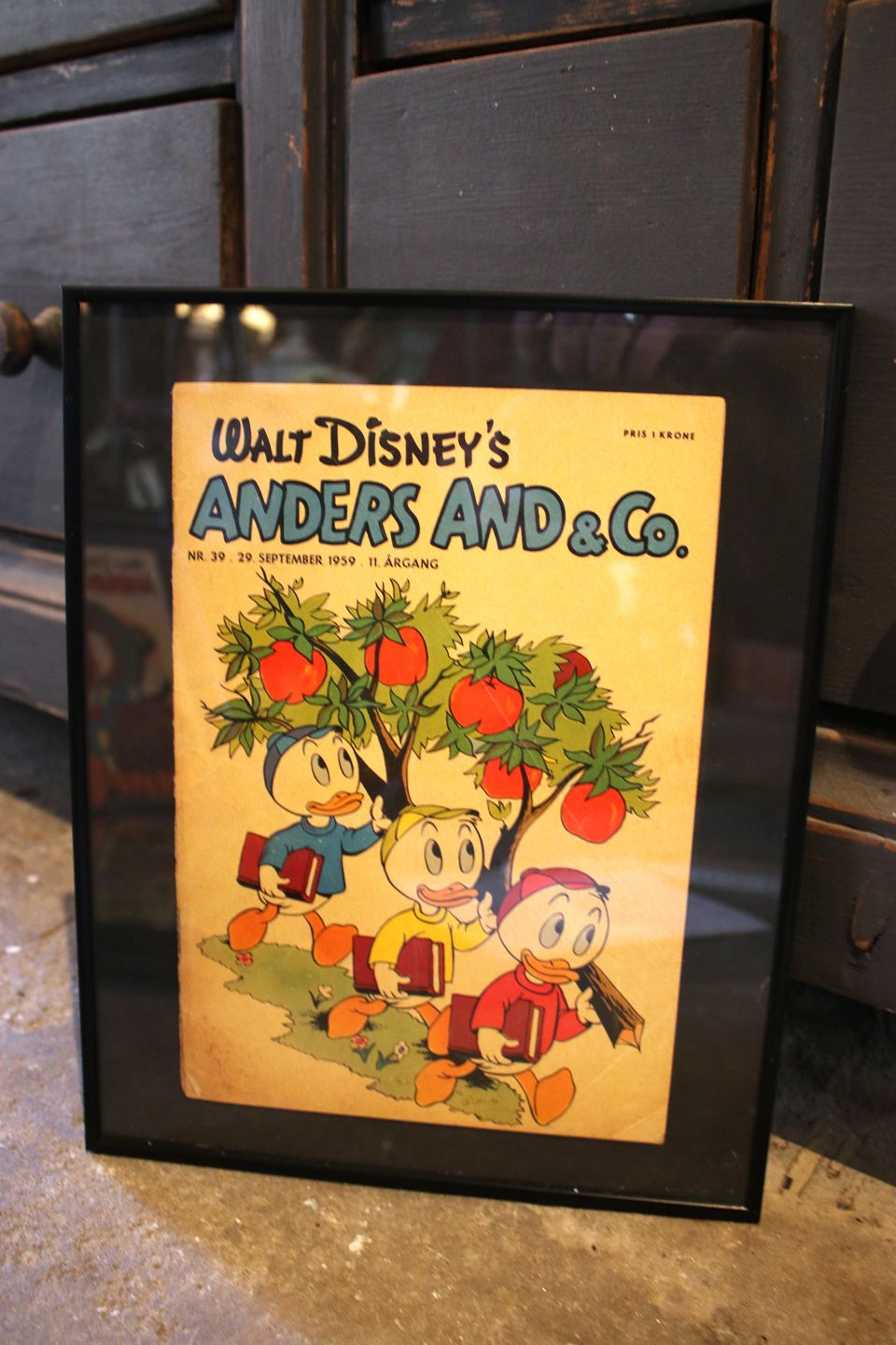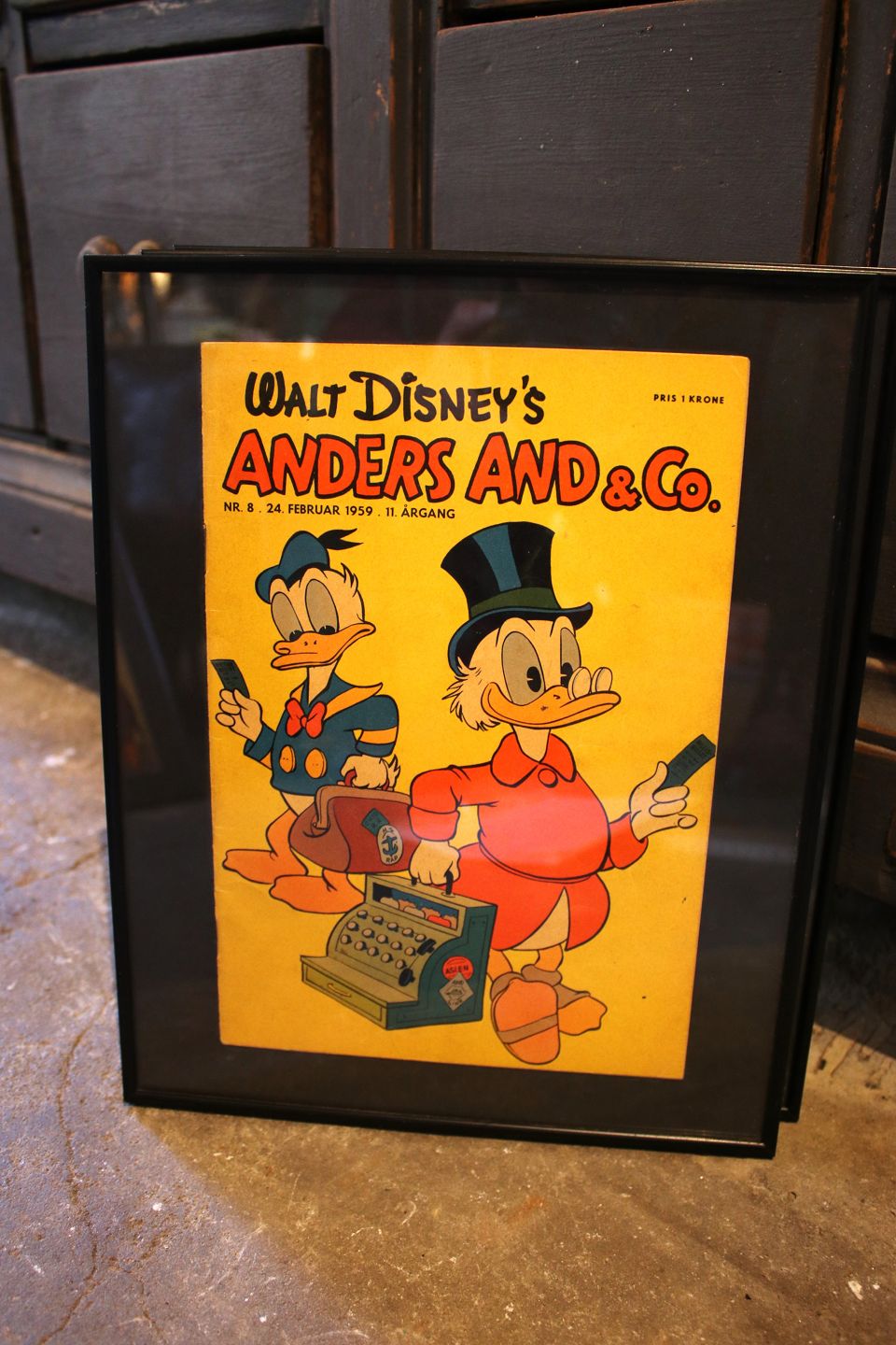 Decorative, old Walt Disney Donald Duck magazines from 1957.The entire Donald Duck magazine is framed in a black frame. 30x24cm.