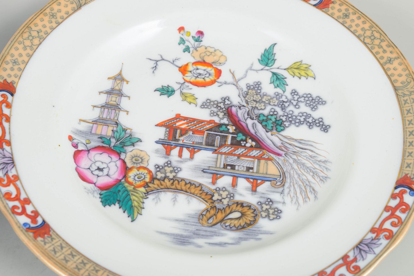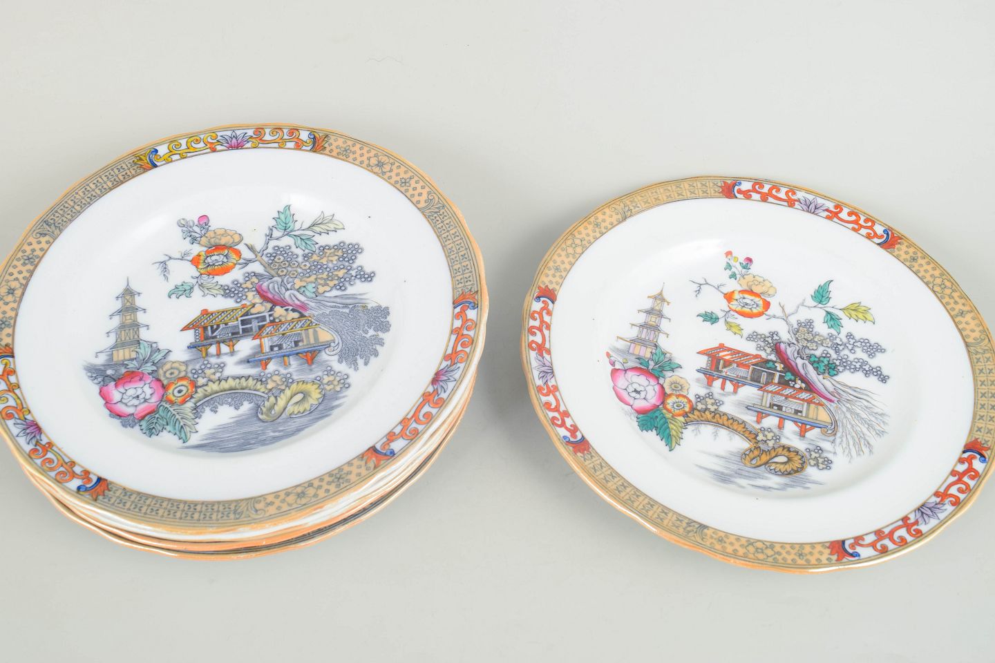 Dinner plates in faience with oriental-inspired decoration in polychrome colours and finely detailed painting in Japanese style, characteristic of Rörstrand’s japonisme production from the early 20th century.