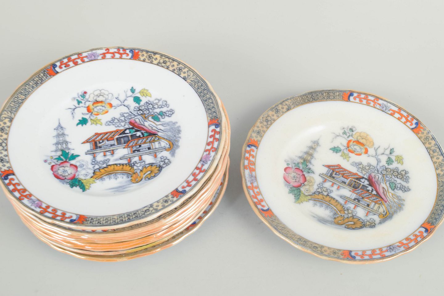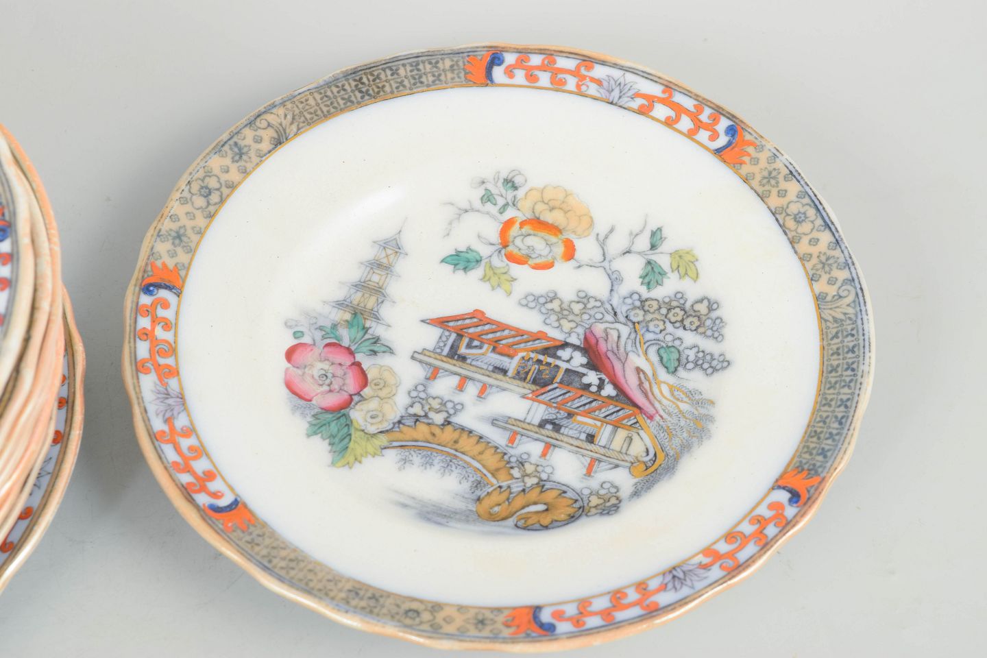 Rörstrand Japan series, set of ten flat plates.Flat plates in faience with oriental-inspired decoration in polychrome colours and finely detailed painting in Japanese style, characteristic of Rörstrand’s japonisme production from the early 20th century.