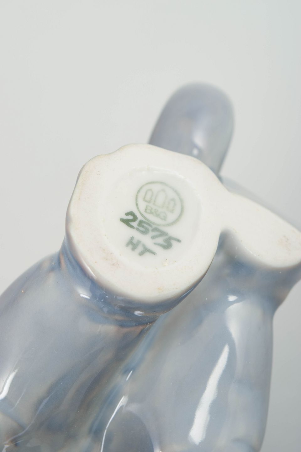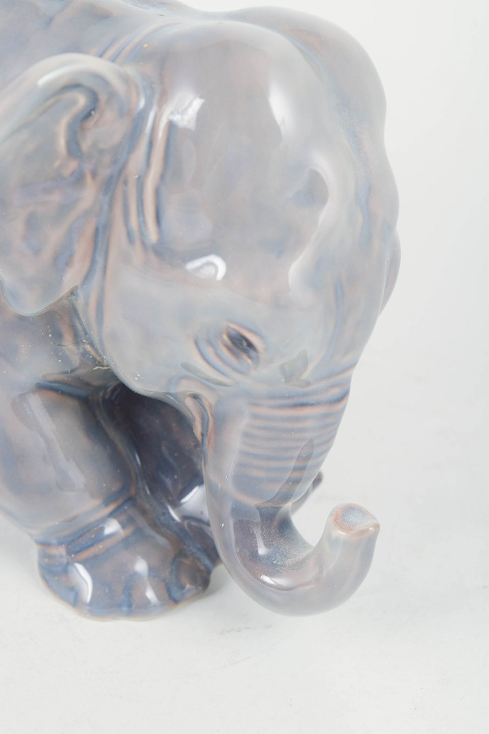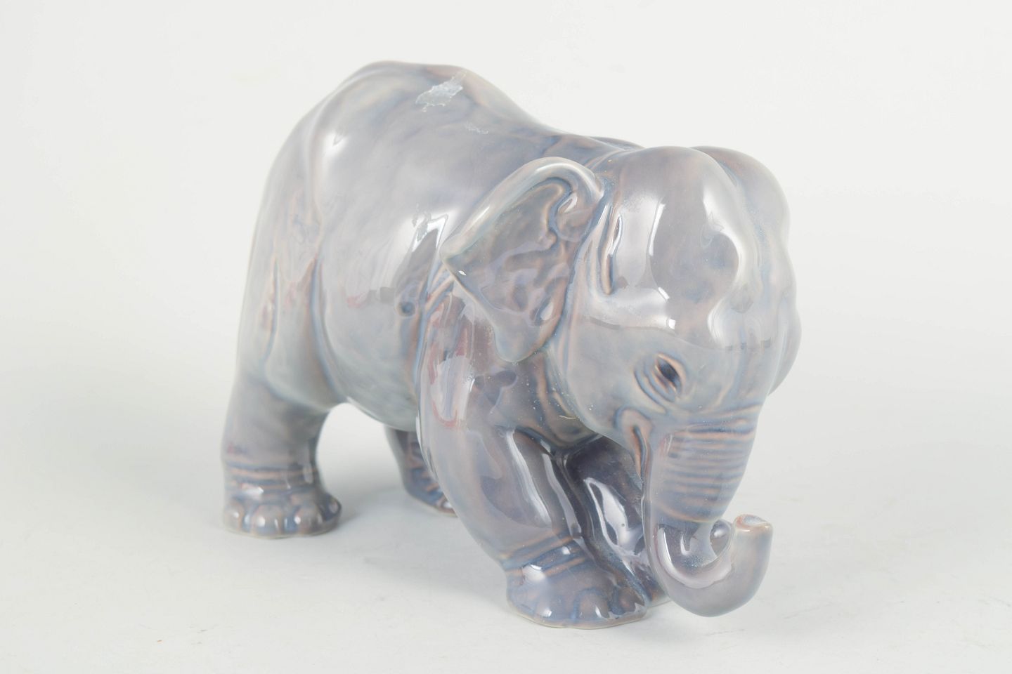 Bing & Grondahl, baby elephant figurine.Naturalistically modelled elephant in porcelain model 2575 with a soft, iridescent glaze in grey and bluish tones. Finely detailed surface and marked as first factory quality on the base.