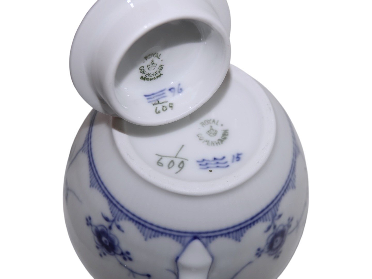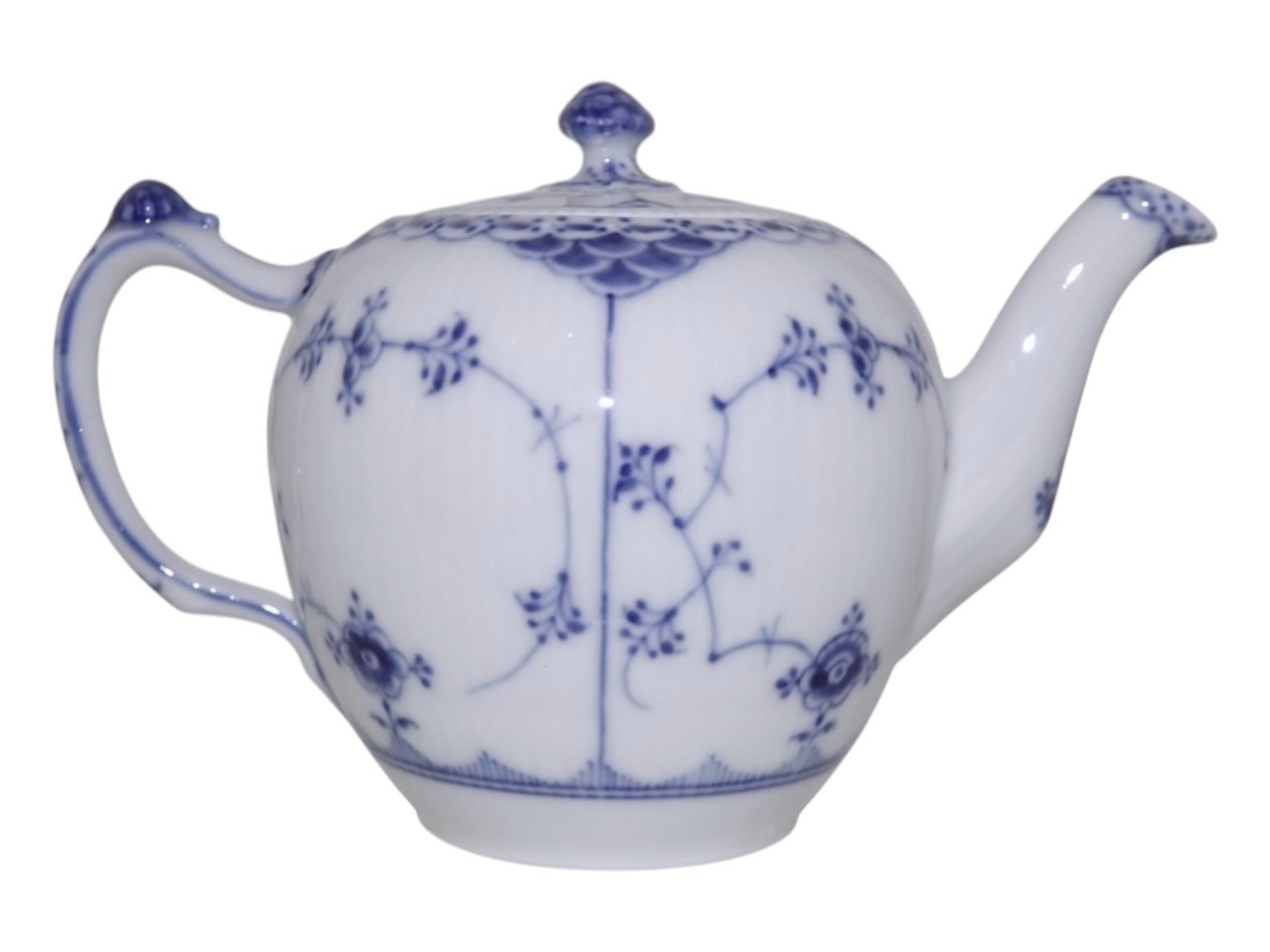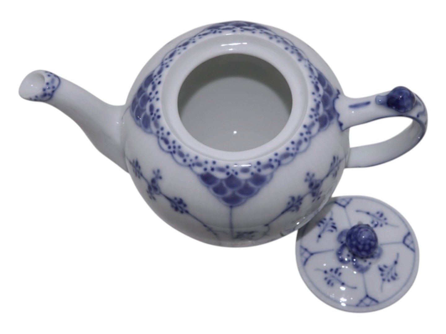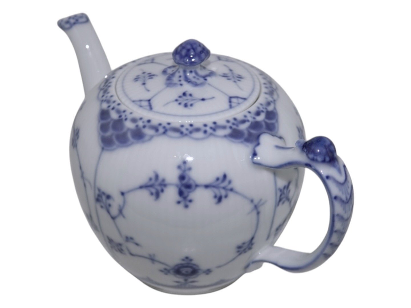 Royal Copenhagen Blue Fluted Half Lace, small teapot.The factory mark shows, that this was produced between 1898 and 1923.