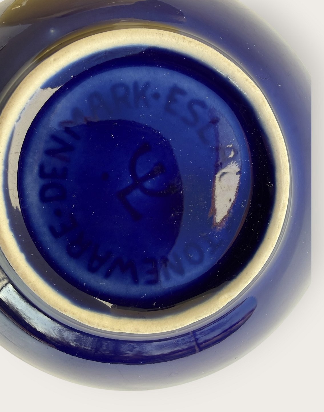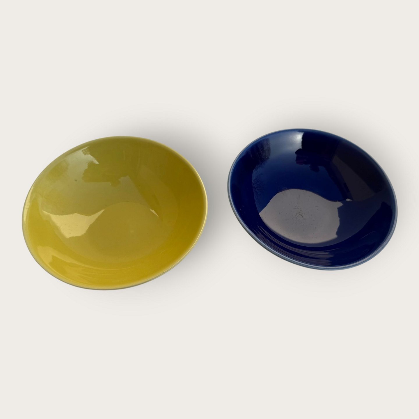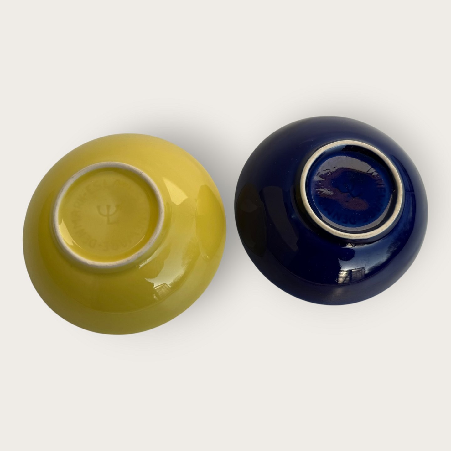 Eslau ceramics, two bowls: one blue and one yellow, 12cm in diameter *Good condition*Stock: 1