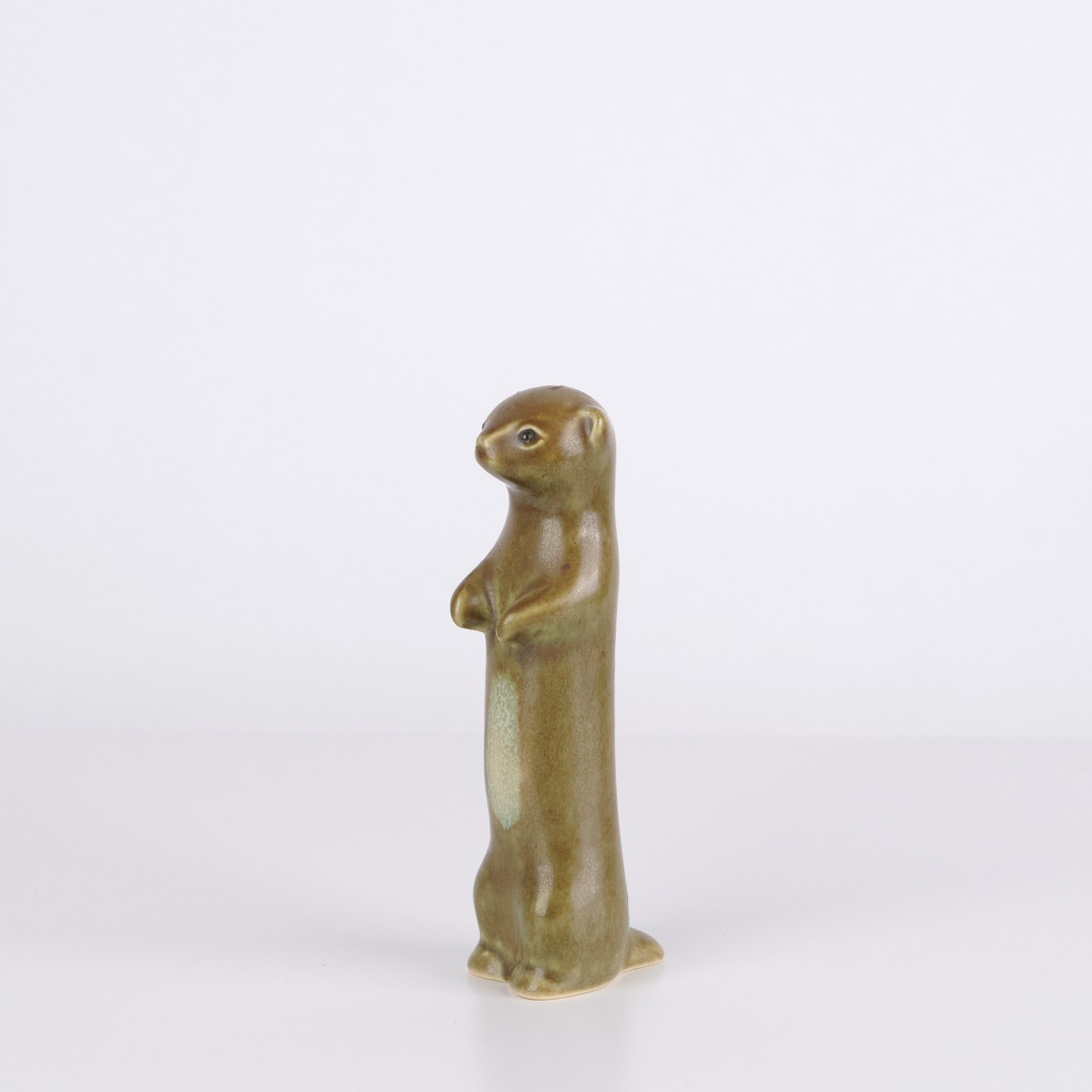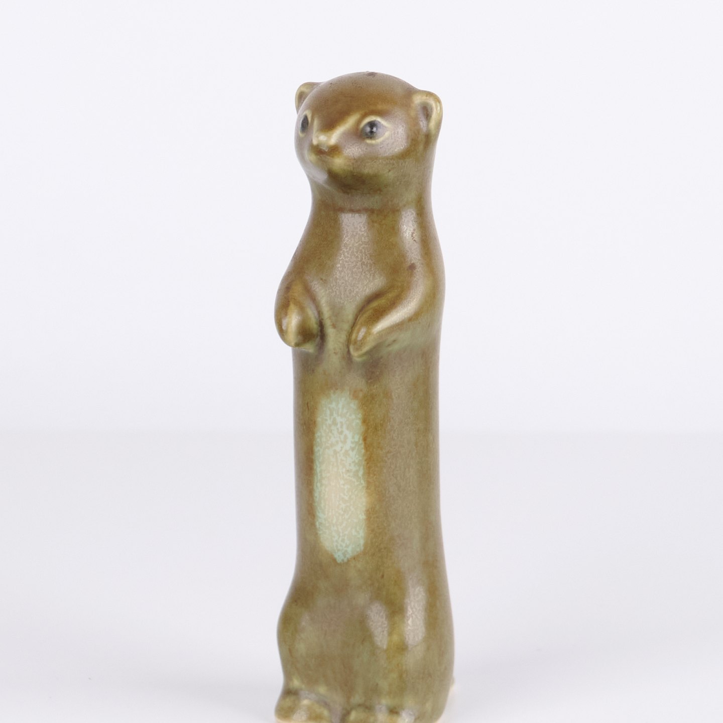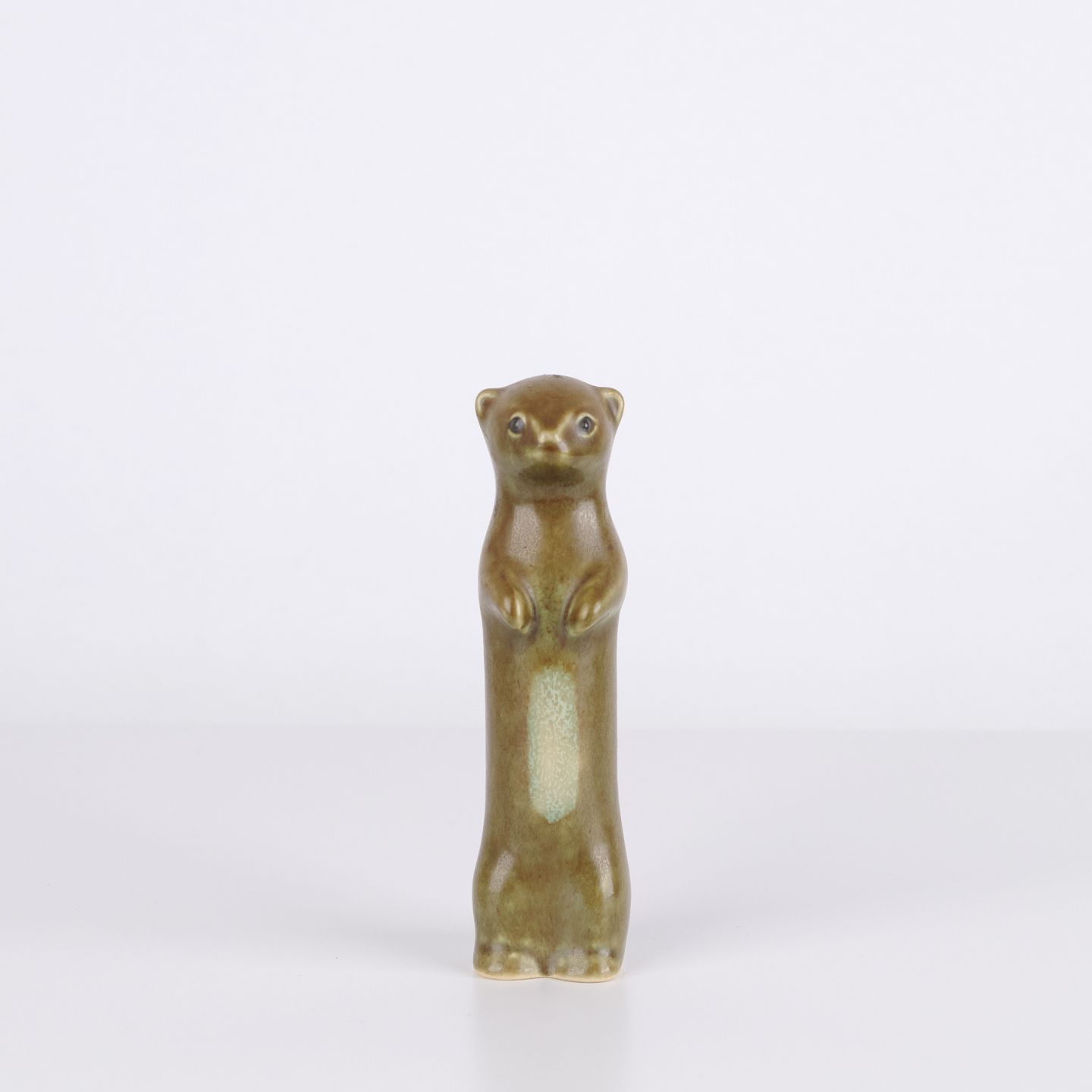 Animal figure by Knud Basse made in glazed ceramic. The figure depicts a ferret or stoat and was produced in Denmark in the 1960s. Knud Basse is known for ceramic animal figures with nature motifs and smaller production series from the period.— Origin: Denmark