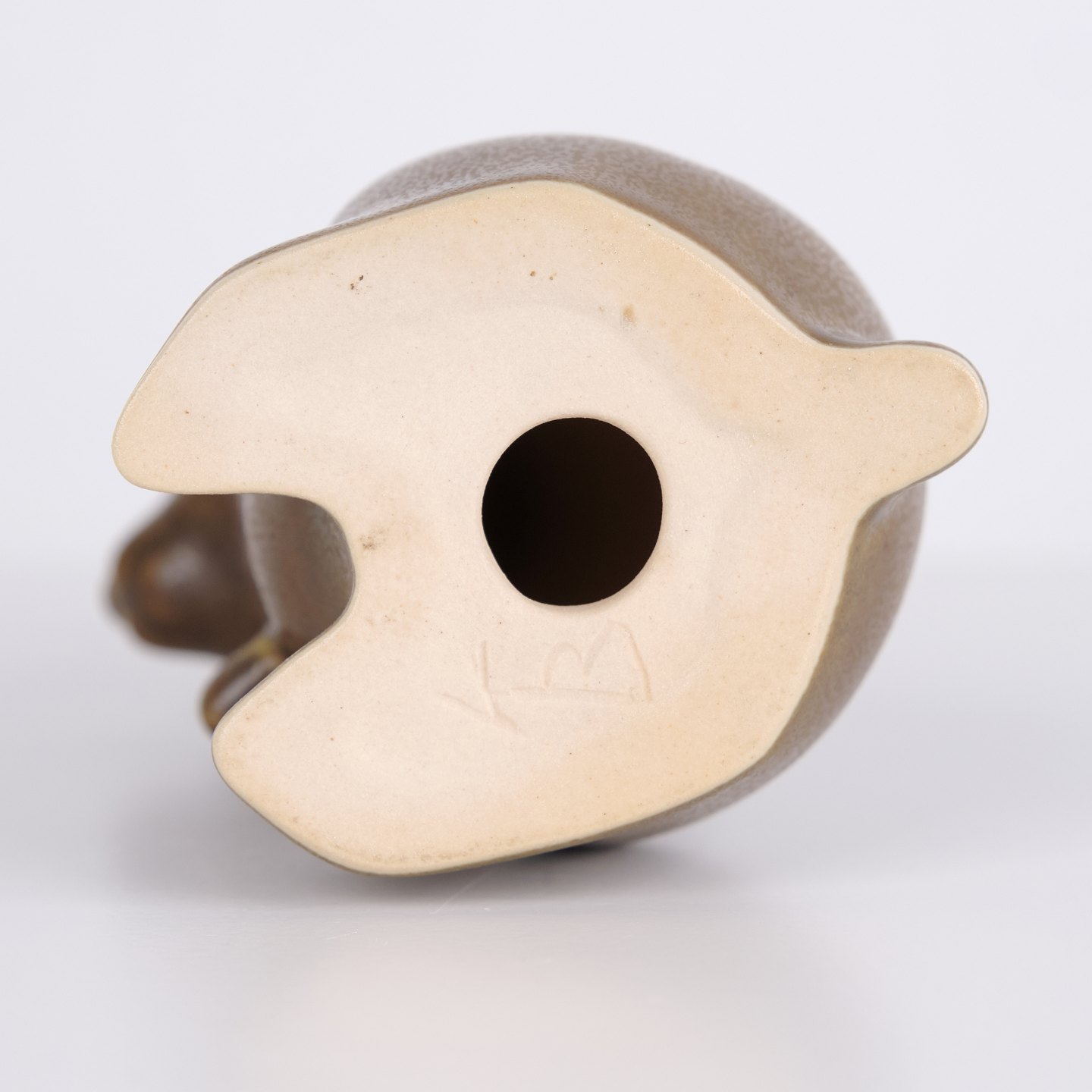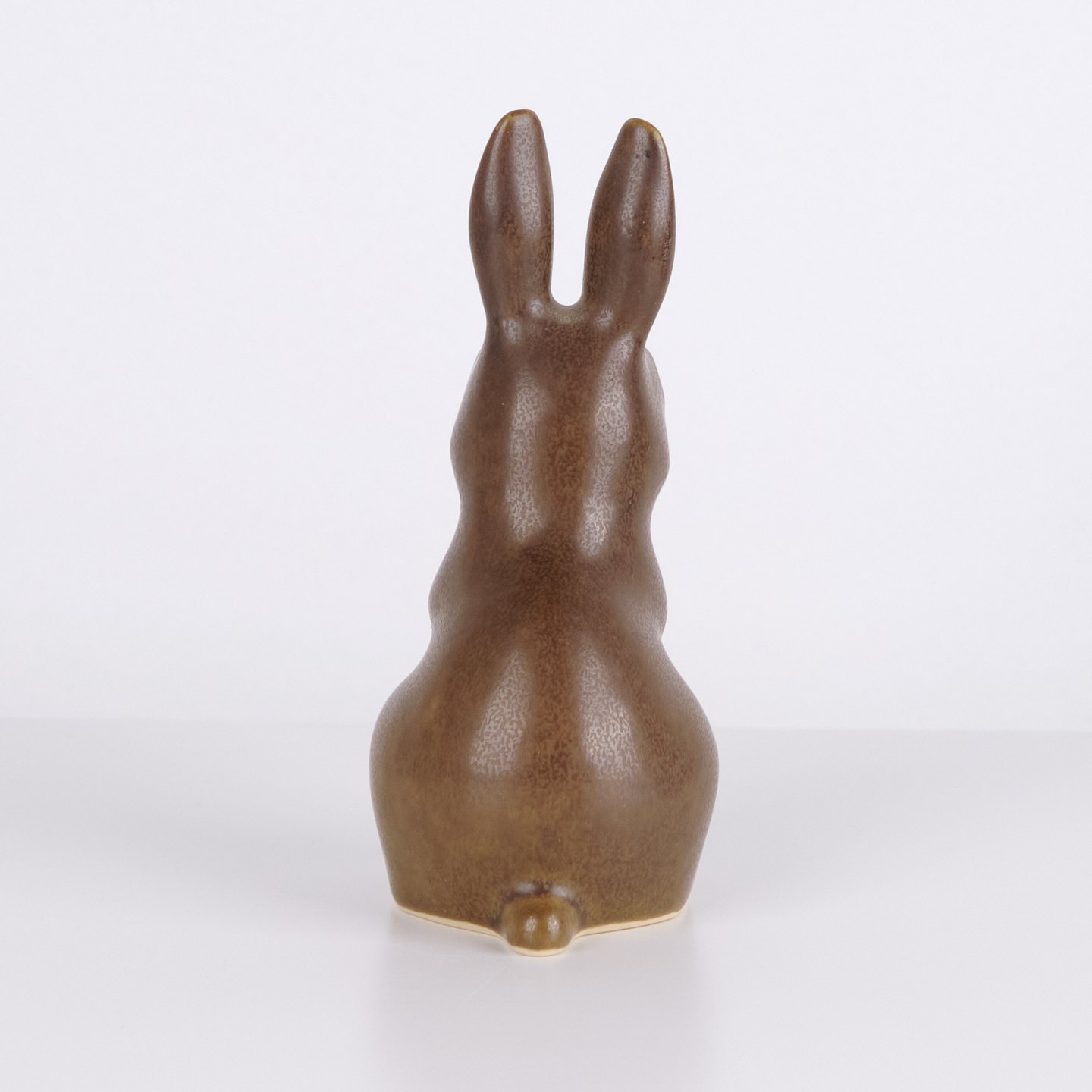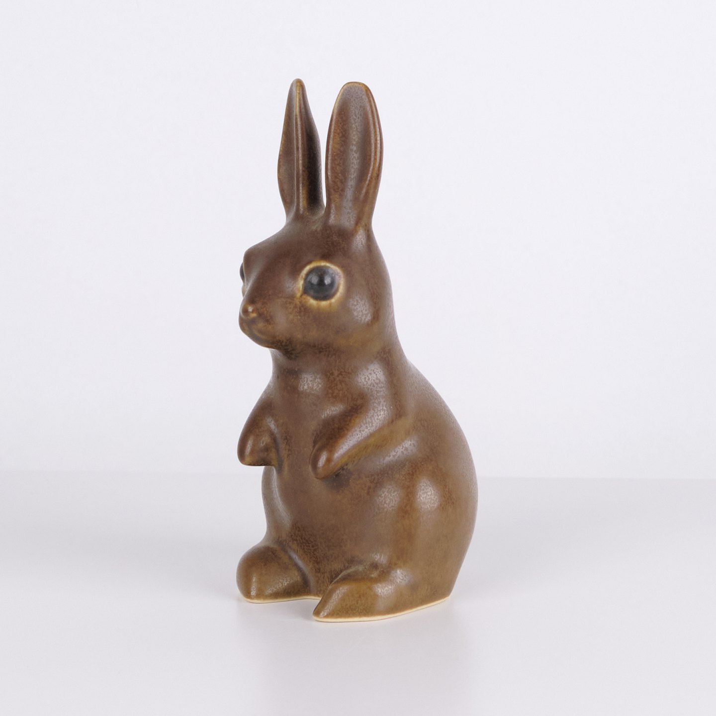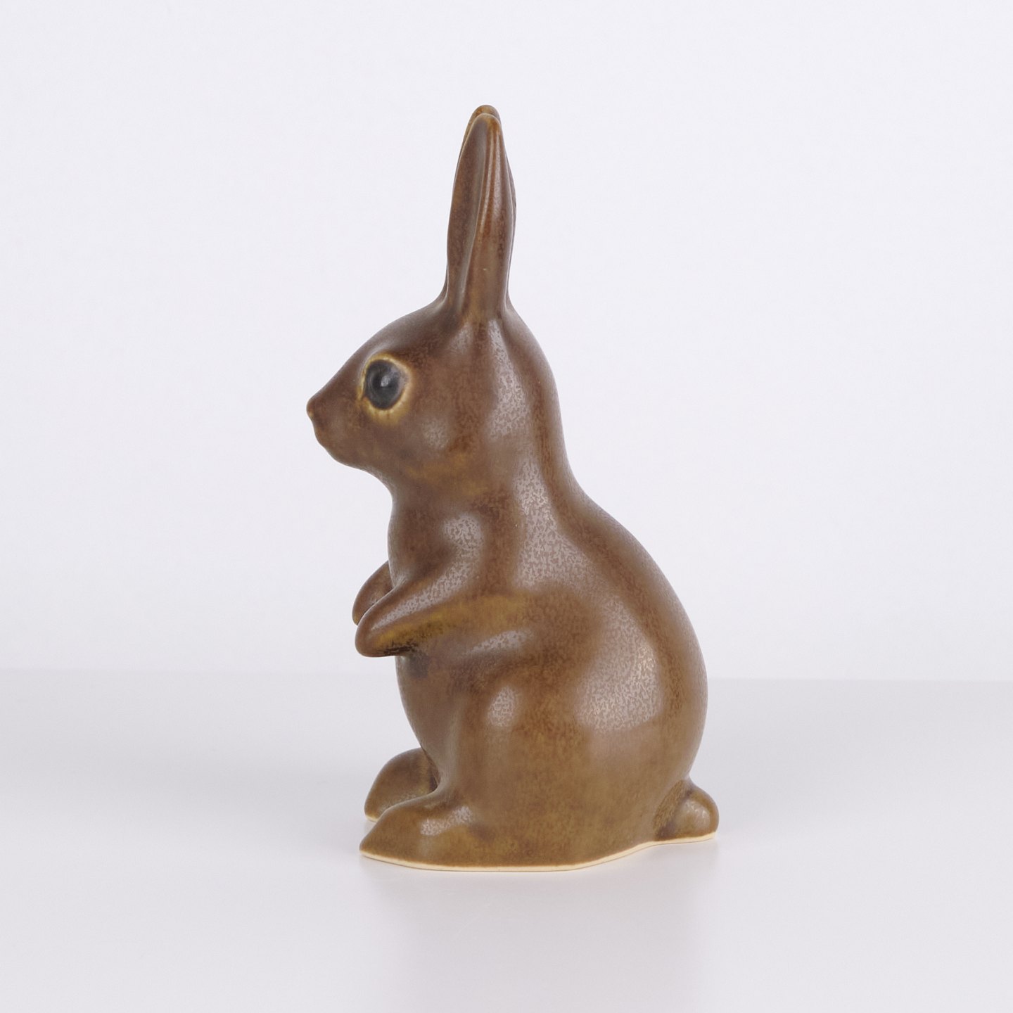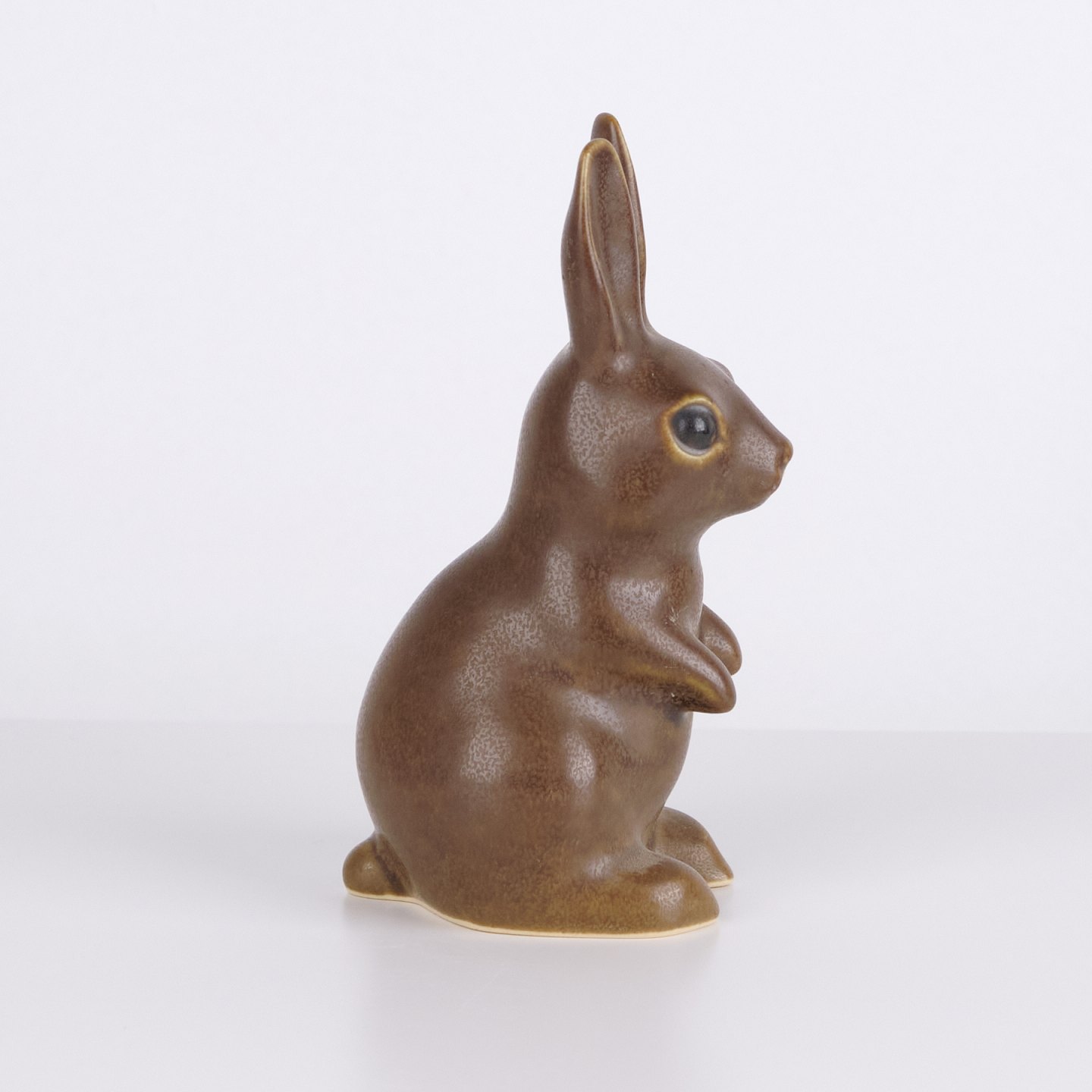 Large hare figure by Knud Basse made in brown glazed ceramic. The figure is modeled in an upright seated form with long ears and fine hand-painted eyes.— Origin: Denmark