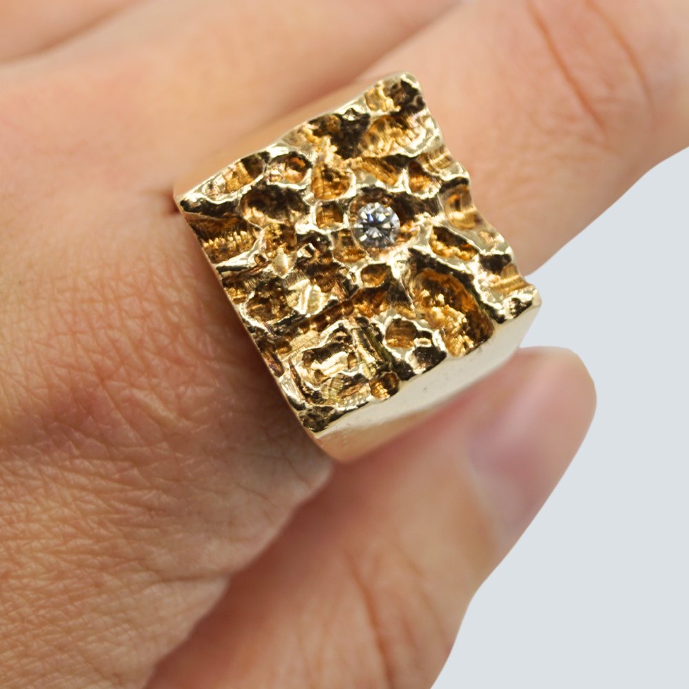 Ejvind Sørensen; Large signet ring in 14k gold with diamond, approx. 0.10 ct. Strong quality. Weight: 50 grams.Ring size 61-62.