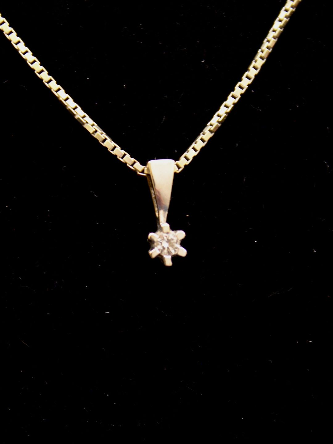 18 carat white gold pendant with diamond and 18 carat white gold chain 43 cm. Dealer
