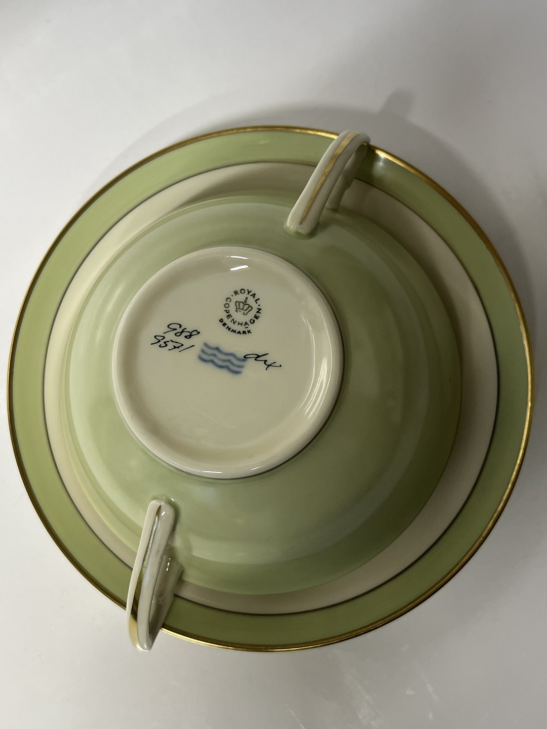 Royal Copenhagen Dagmar bouillon cup with matching saucer.Decoration number 988/9571.
