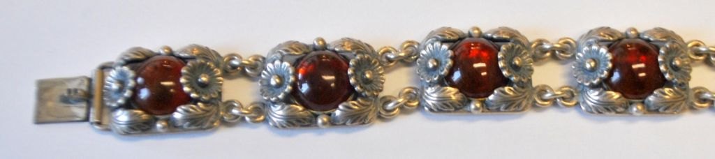 From, Niels Erik (1944 - 2009) Danmark: Armbånd i sterlingsølv med rav. Stemplet. L.: 20,5 cm.Emne nummer: 29061