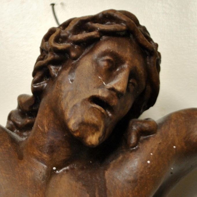 The suffering Christ. Painted plaster, 19th century. H.: 70 cm. W.: 47 cm.Item number: 29112