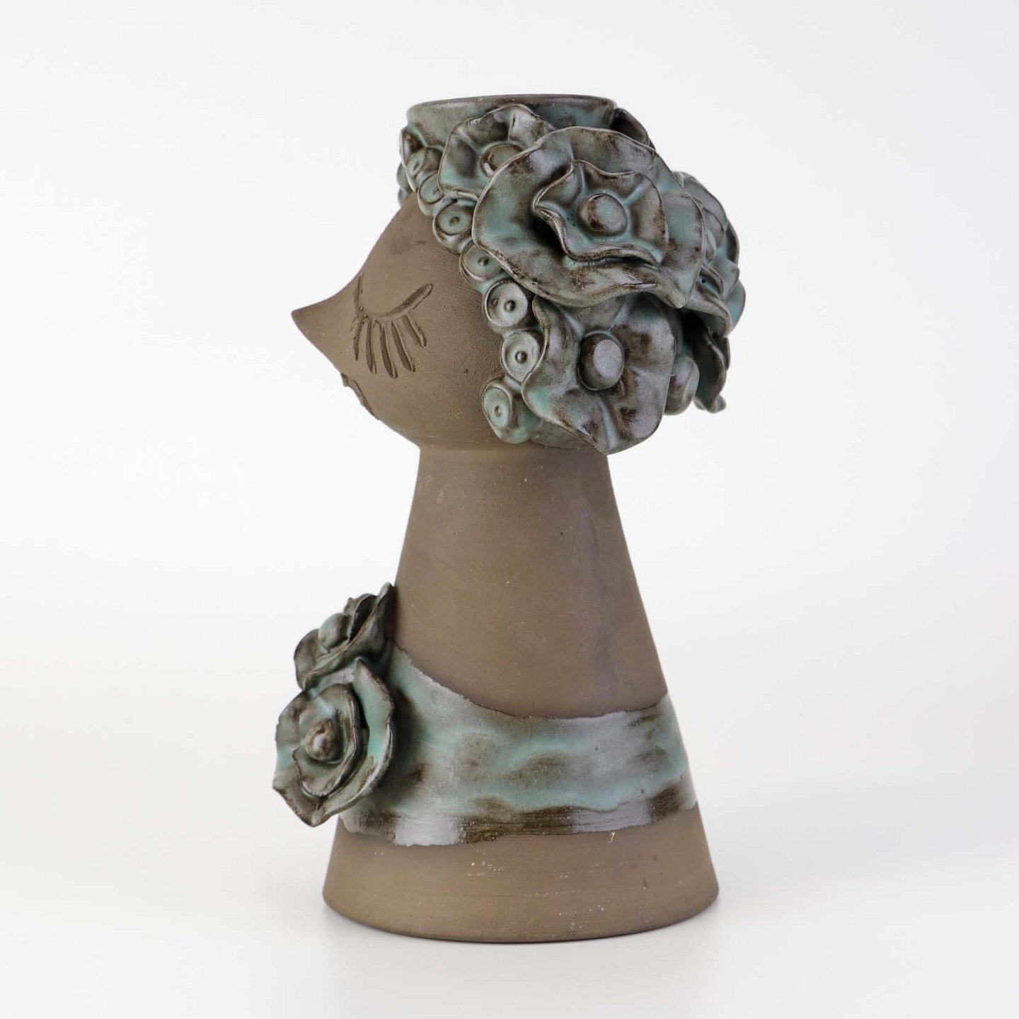 Vase i delvist glaseret keramik med motiv af Thurøpige med grønlig glasur.Producent Flemming Ross