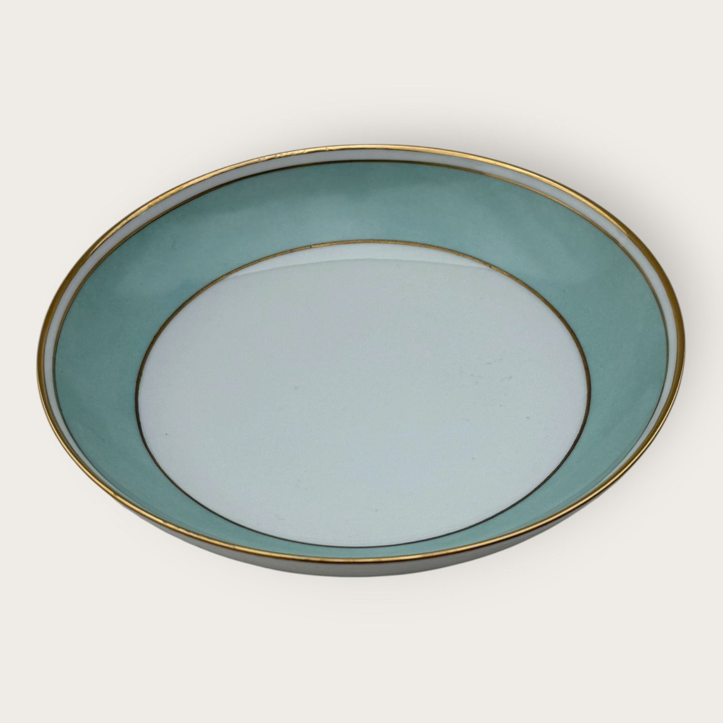 Bing & Grondahl, Form 643 with wide turquoise decoration and gold rim, deep plate, diameter 20cm, 1st grade, *nice condition*Stock: 12