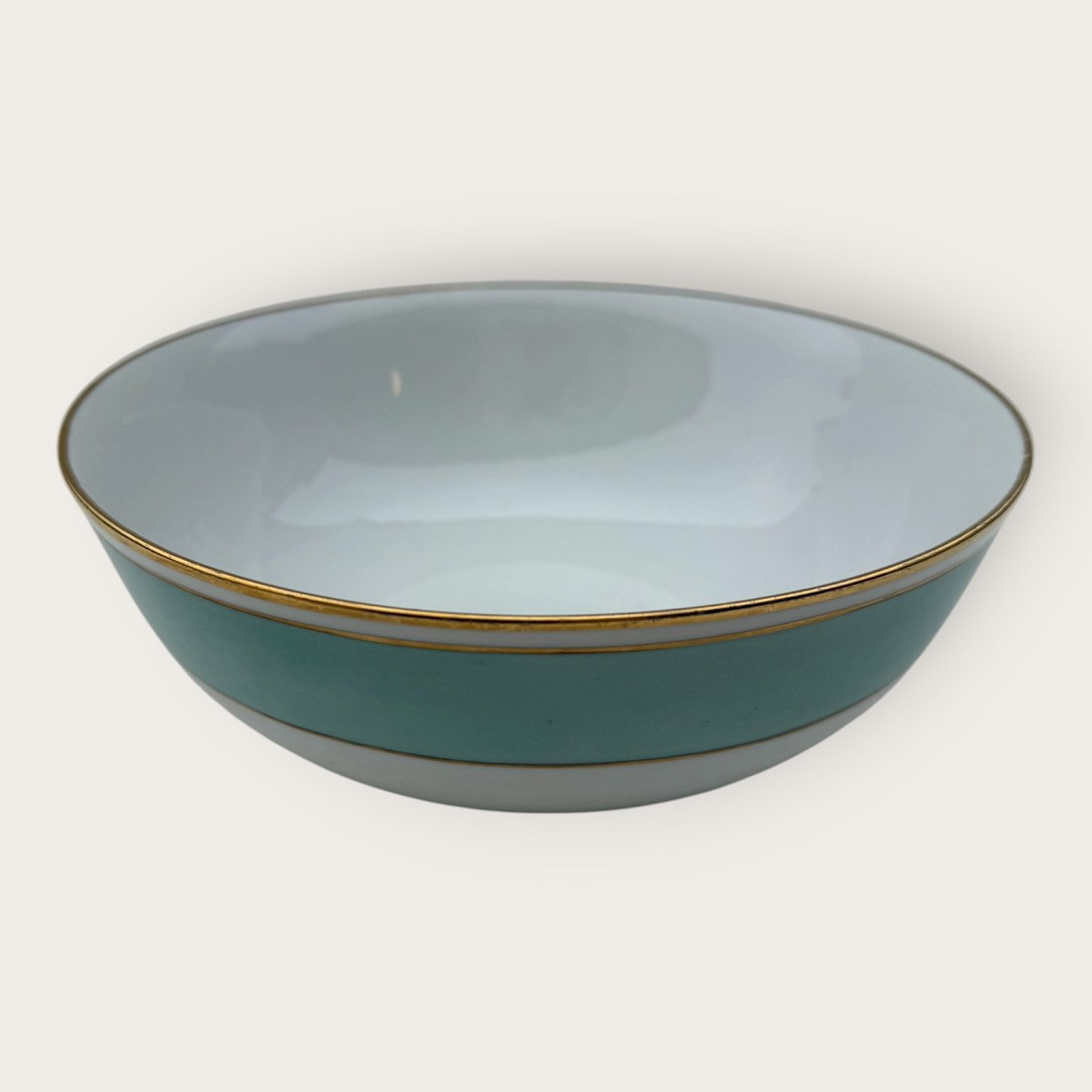Bing & Grondahl, Form 643 with wide turquoise decoration and gold rim, Serving bowl, #43, 8cm high, width 21cm, 2nd grade, *Good condition*Stock: 1