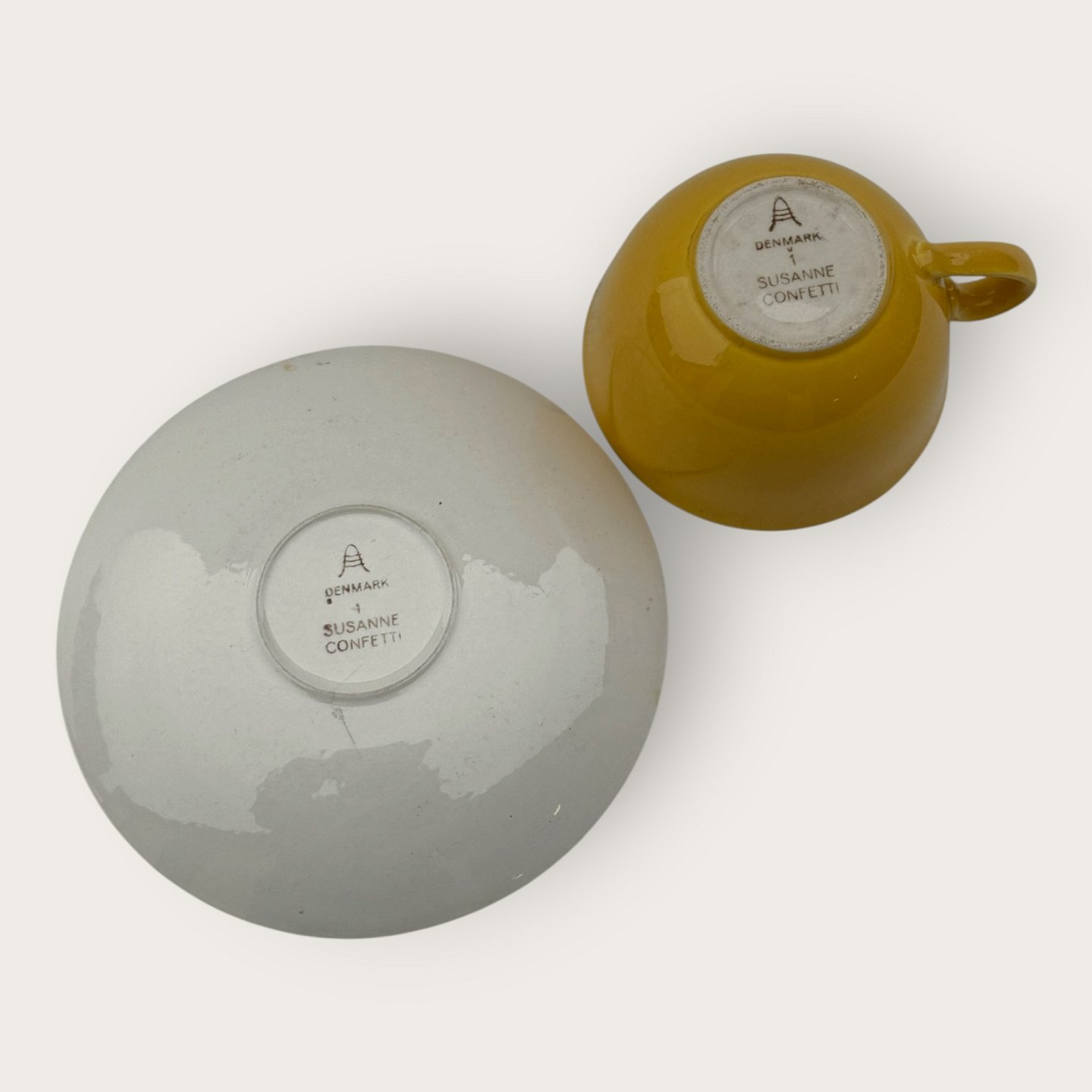 Royal Copenhagen, Aluminia, Confetti / Susanne, tekop, Gul, kop 9,5cm i diameter og 6cm høj *Fremstår med en del krakeleringer indvendigt i koppen*Stock: 2