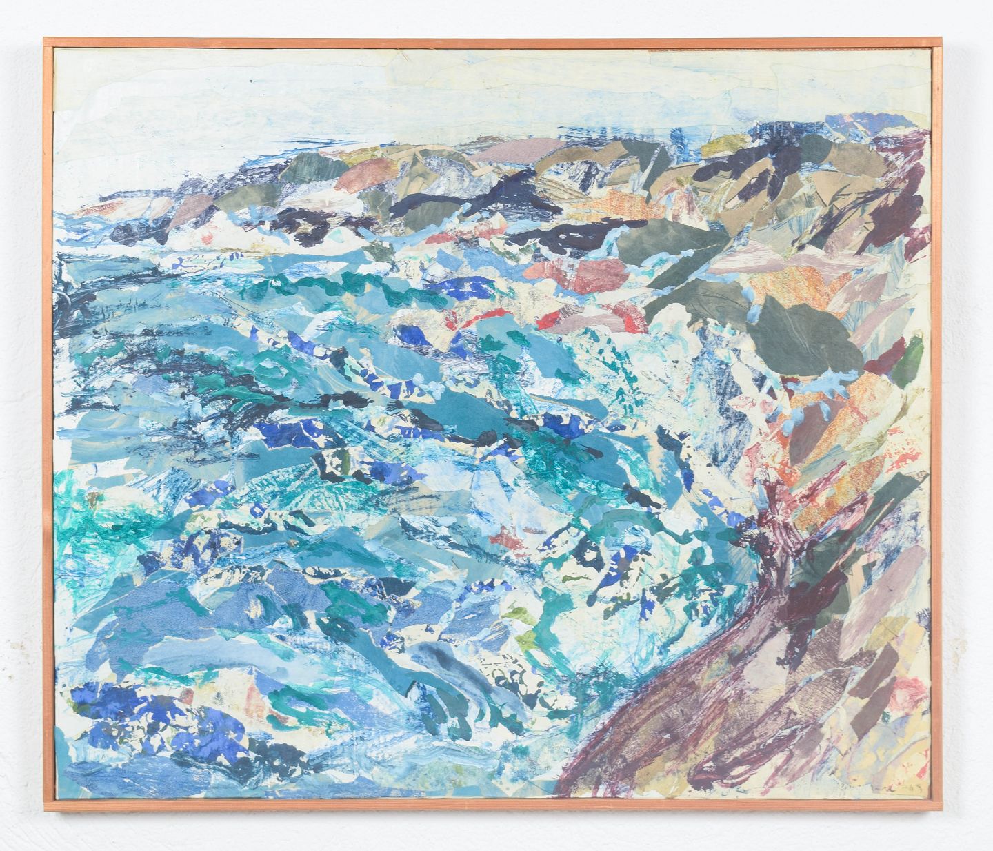 GÖSTA Alm, mixed media on board, listed Swedish visual artist.Expressive coastal motif from the Swedish archipelago with dynamic brushstrokes and layered fields of color in blue, green, and earthy tones. The composition is executed in mixed media on board and appears signed and dated 1969.