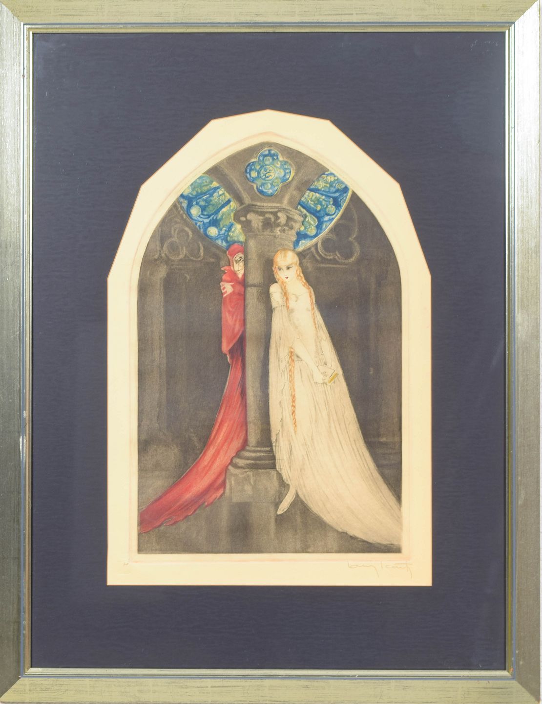 Louis Icart, etching, listed French visual artist.Faust : Margueritte and Devil