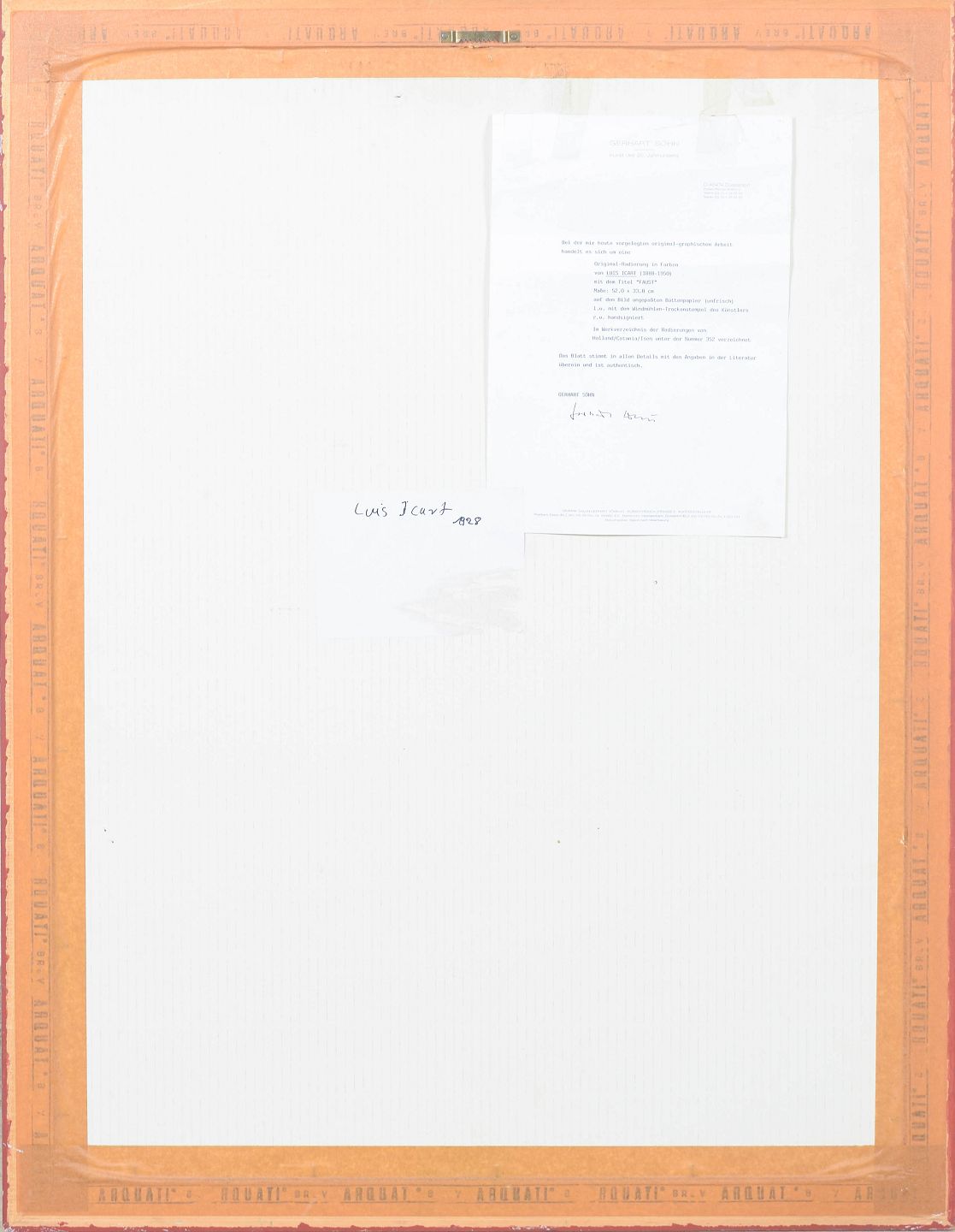 Elegant and atmospheric composition featuring two figures within an architectural setting, executed in Icart’s characteristic Art Deco style with refined linework and soft tonal transitions. Signed in pencil and numbered 70. Dated 1928.