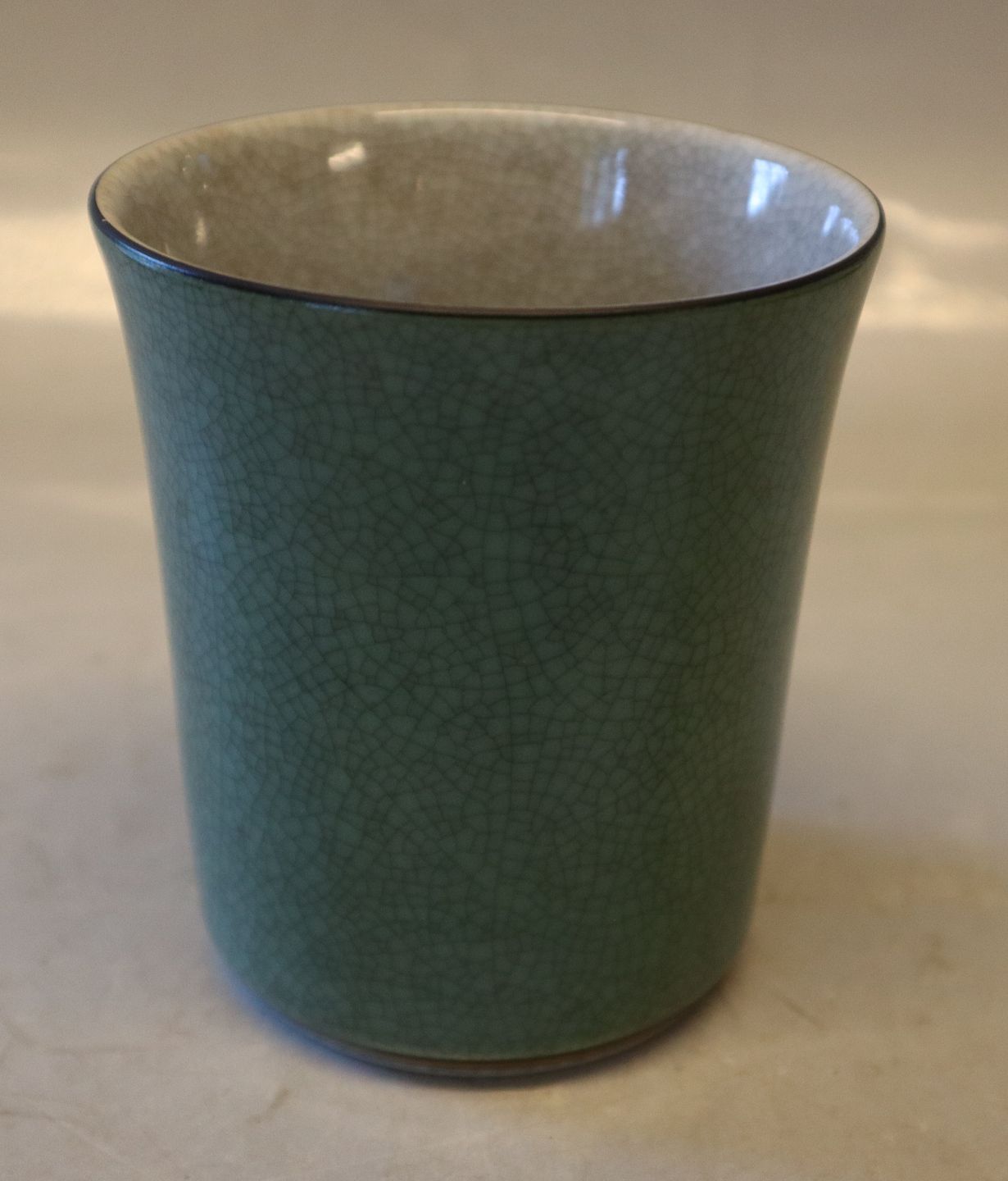 457-3613 RC Green Vase with grey and gold 10.5 x 9.5 cmRoyal Copenhagen Crackleware Craquelé, (Crackelure)