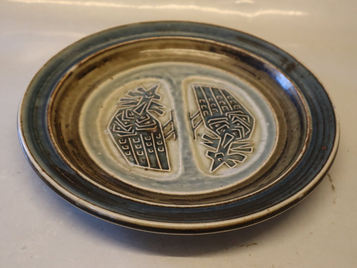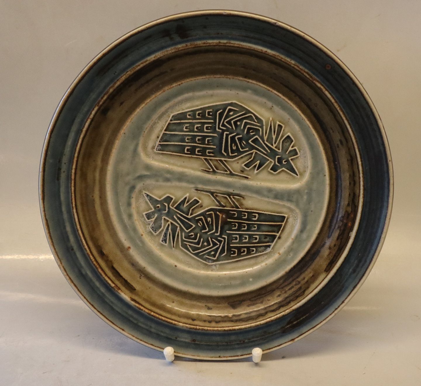 21847 RC Tray 26 cm August 1961 Jorgen Mogensen JM Fantasy Birds Royal Copenhagen Stoneware. In nice and mint condition Dealer