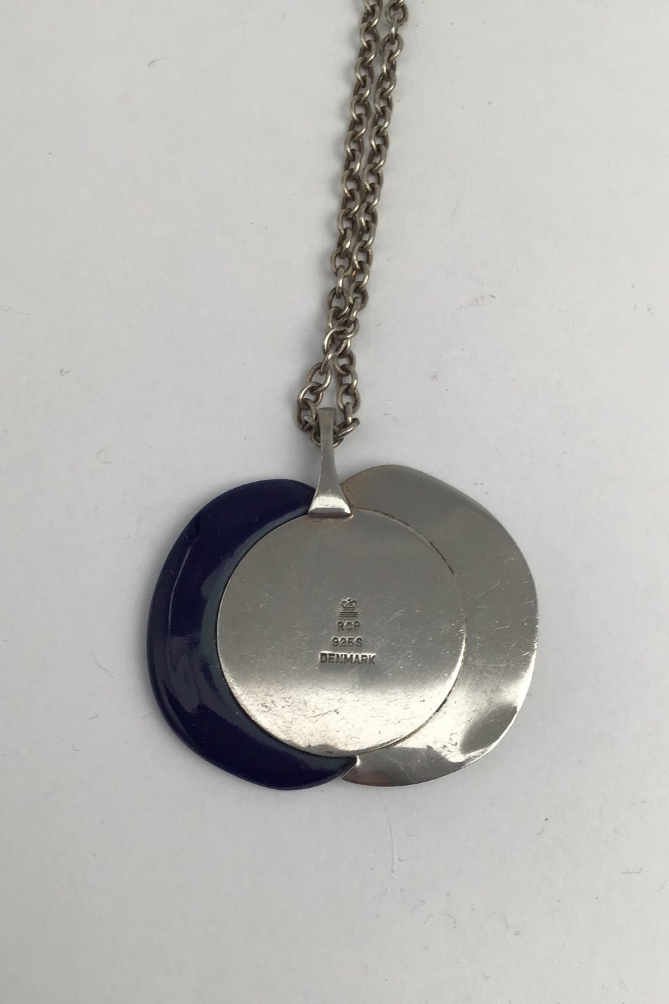 Royal Copenhagen (RCP) Sterling Silver / Porcelain Pendant incl. chain Måler 4.7 cm x 4.7 cm (1.85 inch x 1.85 inch) Chain 64 cm (25.2 inch)Stock: 1