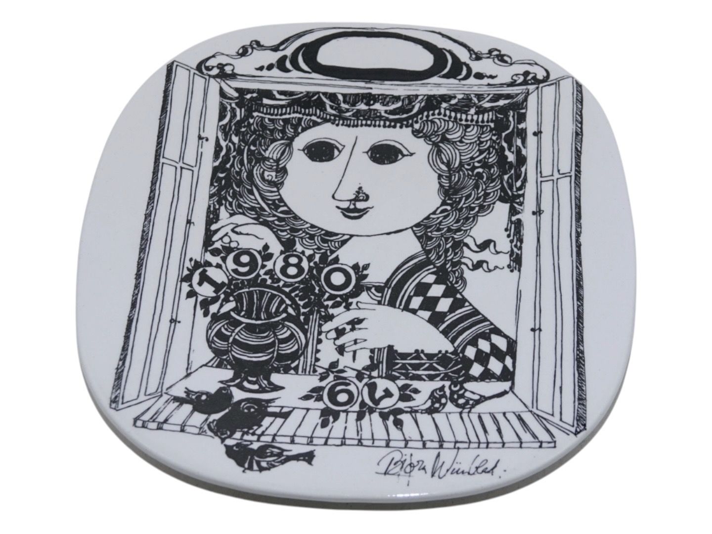 Black Bjorn Wiinblad, Annual plate 1979-1980.Made at Nymolle Pottery.