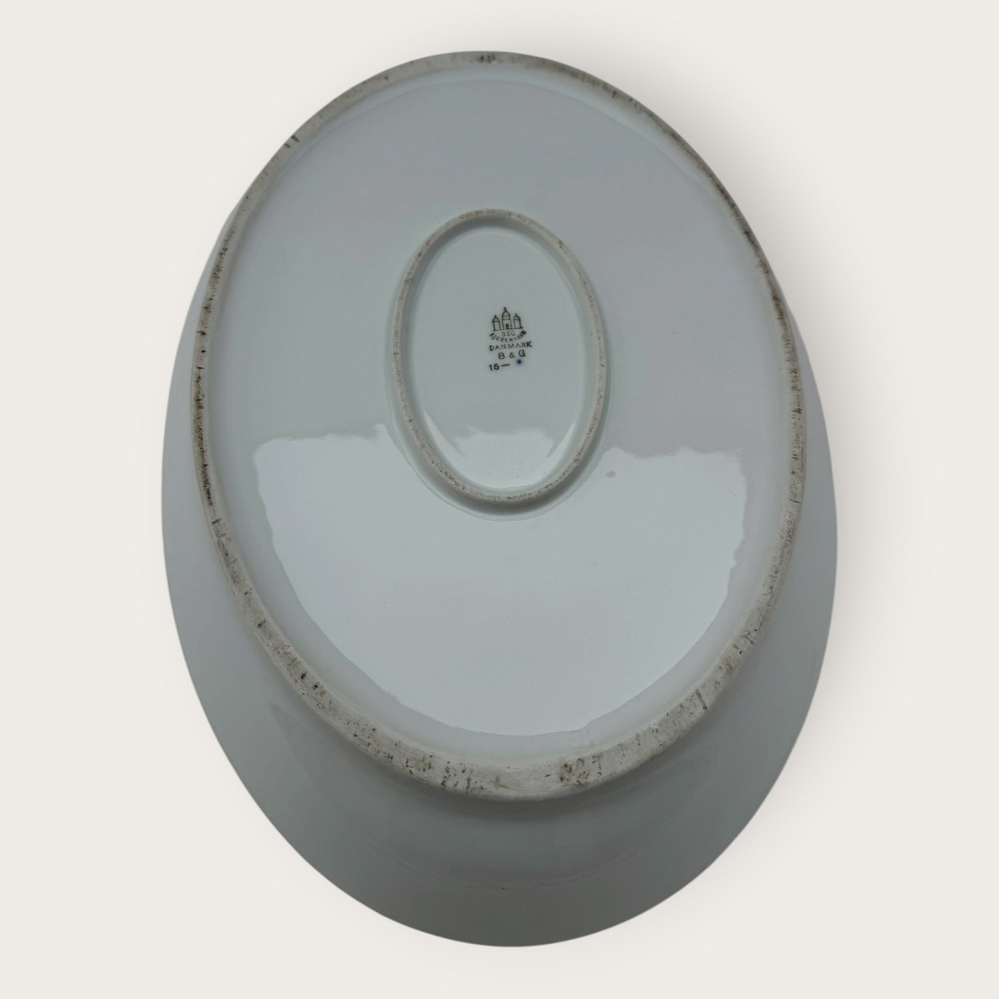 Bing & Grondahl, Form 643 with wide turquoise decoration and gold rim, Serving dish, 33.5x23cm, 2nd grade, *nice condition*Stock: 1