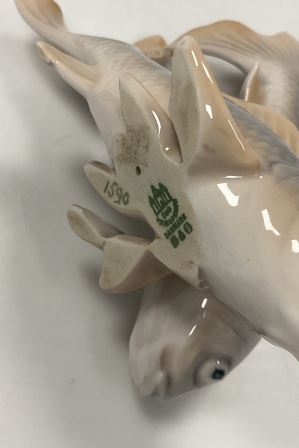Bing and Grøndahl Crucian Carps pair No 1590.Measures 14cm / 5.51 inch and is in Perfect condition.