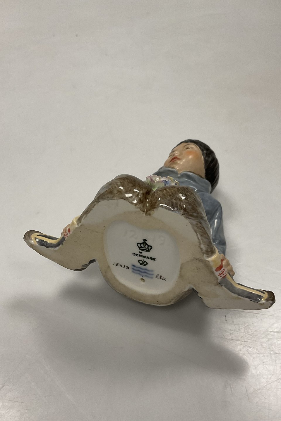 Royal Copenhagen Overglaze Figurine - Boy with Flowers from Greenland No. 12419. Designed by Carl Martin-Hansen. Perfect condition. Measures 9.5 cm / 3.74 in. 1st QualityStock: 1