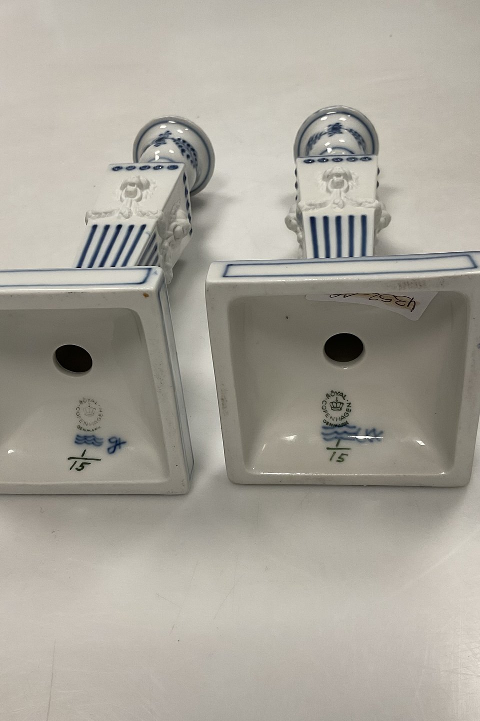 Royal Copenhagen Blue Fluted Plain A pair of Candle Holders No 15. 1. Quality. Measures 22.5 / 8 55/64 in.Stock: 1