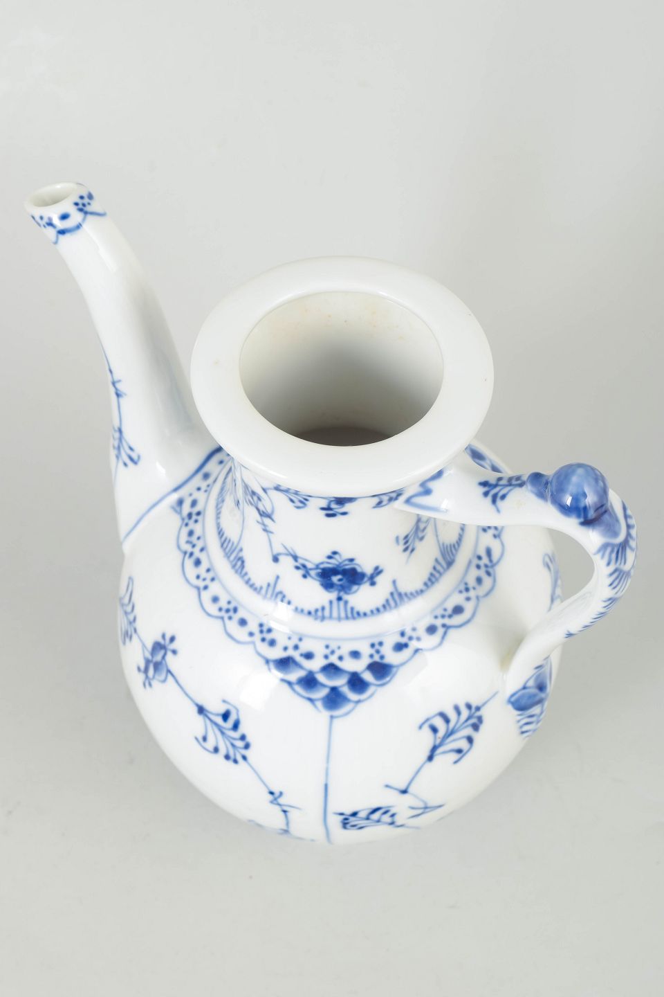 Royal Copenhagen Blue Fluted Plain coffee pot.Classic coffee pot in white porcelain with hand-painted blue Blue Fluted Plain decoration, model 1/519 from the 1970s, 4. quality.