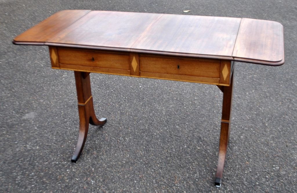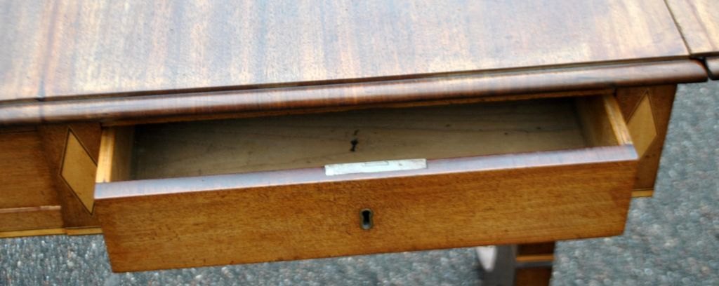 Work table with flaps in mahogany with inlay, approx. 1900. Denmark. Empire style. With drawer. L.: 88 cm. W.: 58 cm. H.: 77 cm. Opened length: 132 cm.Excellent condition.