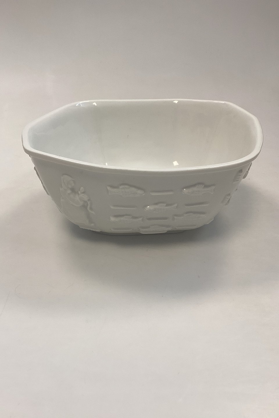 Royal Copenhagen Blanc de Chine Bowl by Bode Willumsen No. 4085With motifs of fish and fishermen/women.