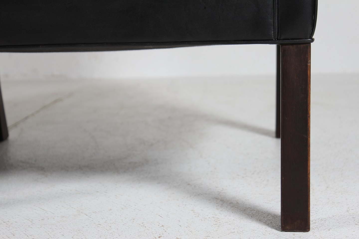 with black leather and legs of dark wood