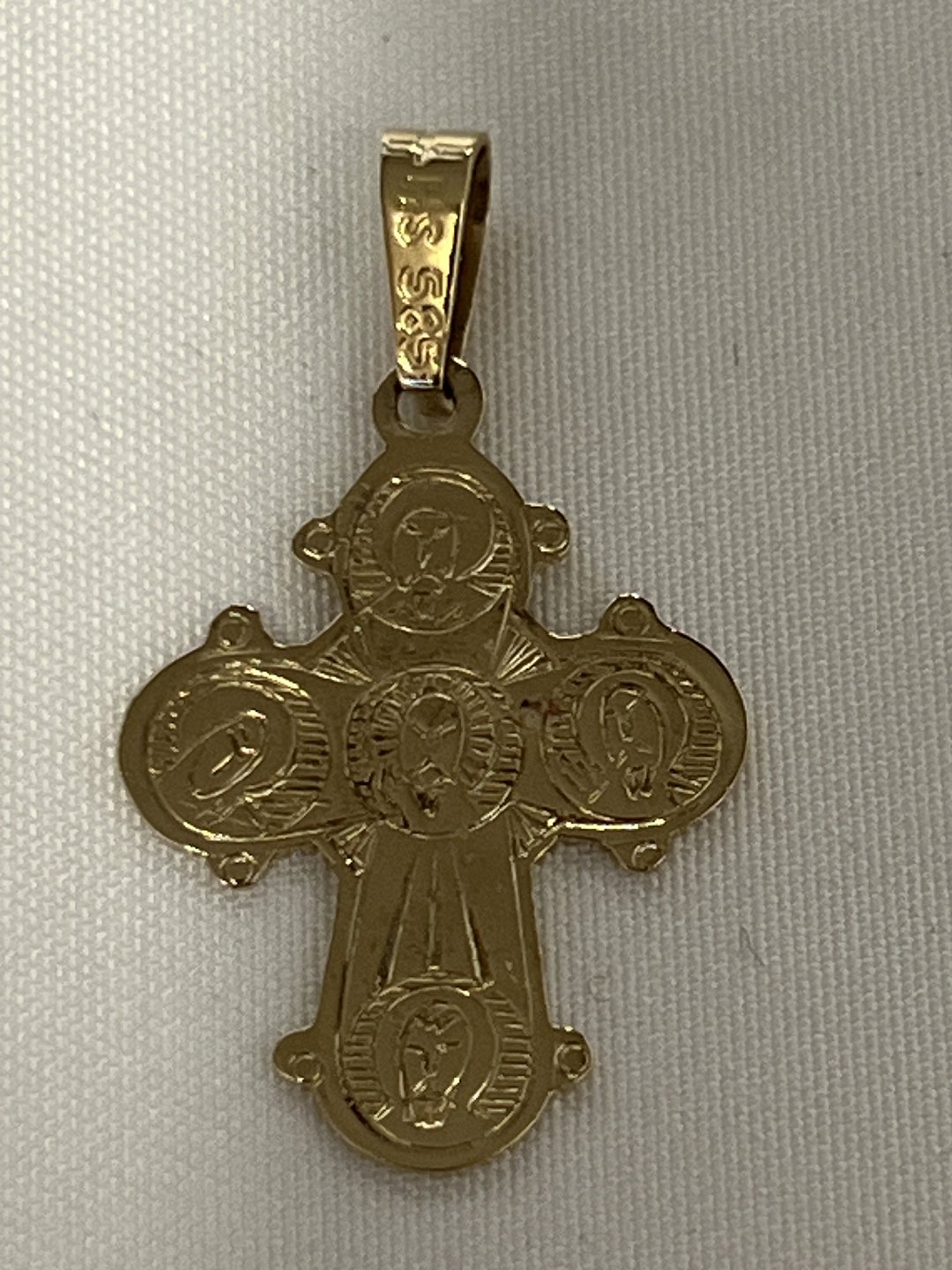 Classic Day of the Dead cross with the suffering Christ on the front, and the 5 large ones on the back. The Day of the Dead cross is a traditional piece of jewelry that is often given as a baptism or confirmation gift.Height with loop: 2,9 cm.