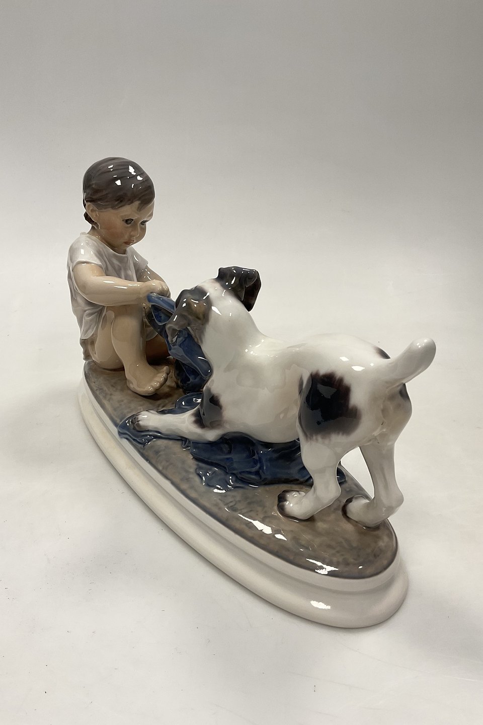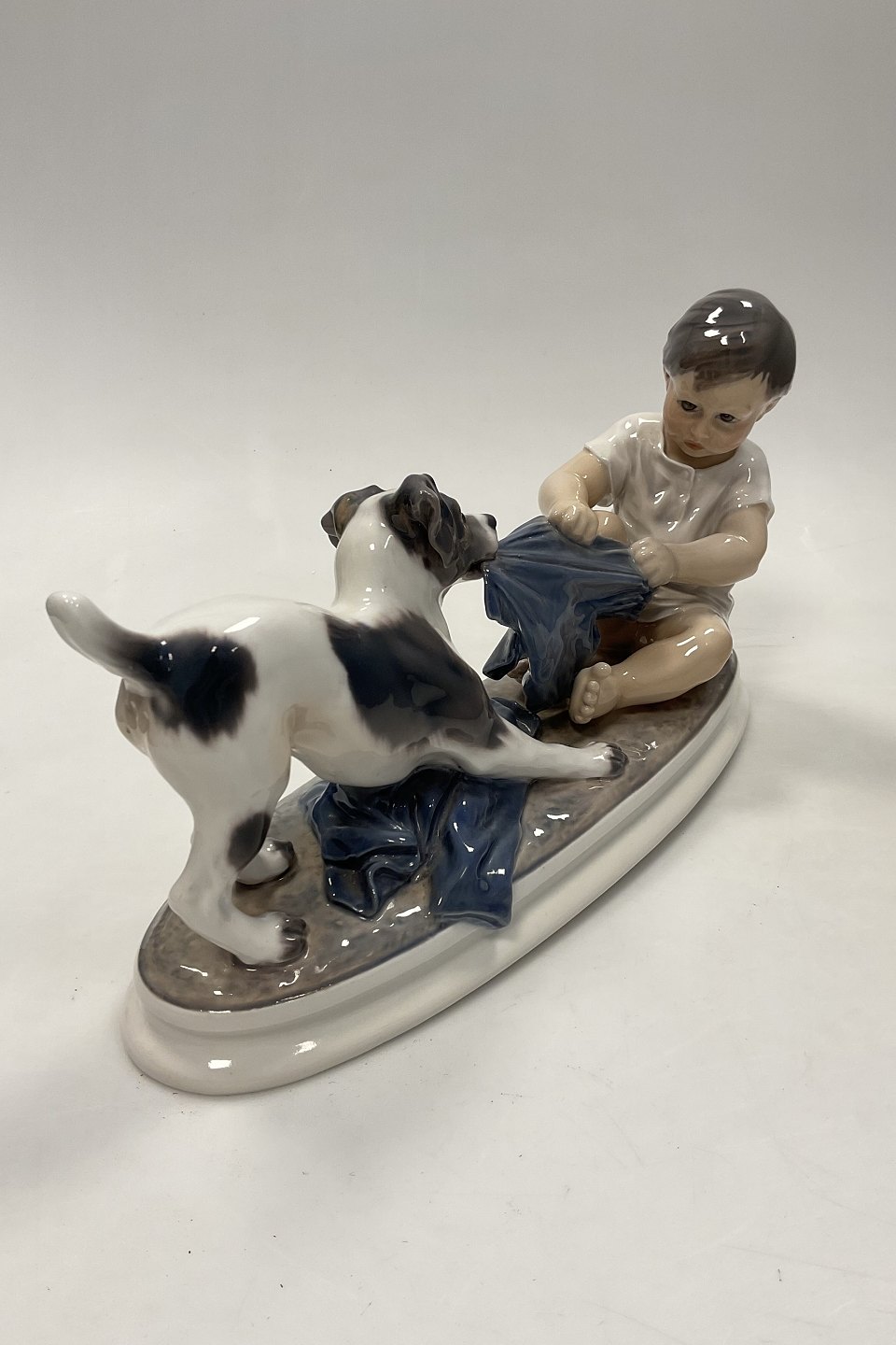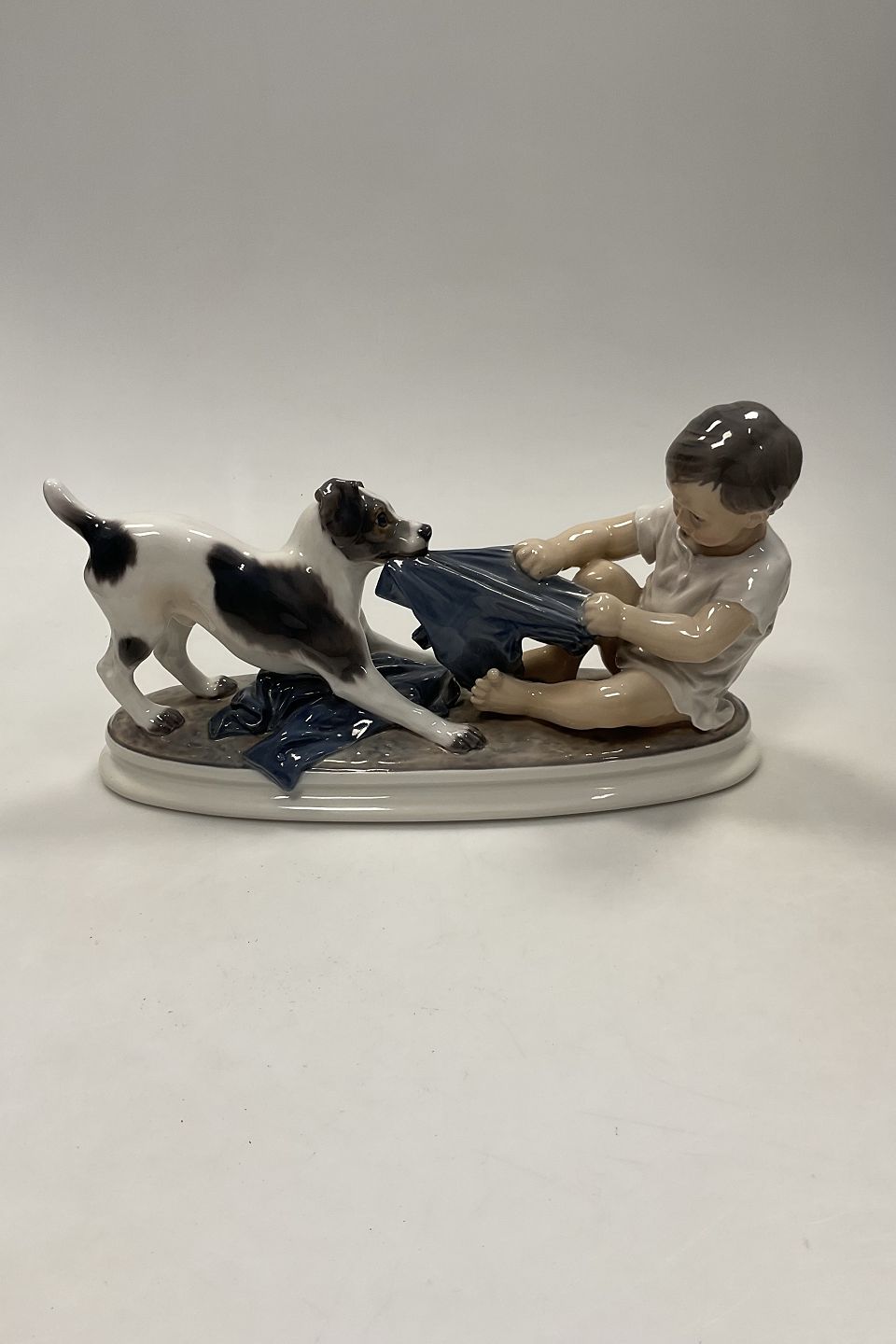Dahl Jensen Figurine of wire haired Foxterrier dog in play with boy No 1072Measures 32,5cm / 12.80 inch