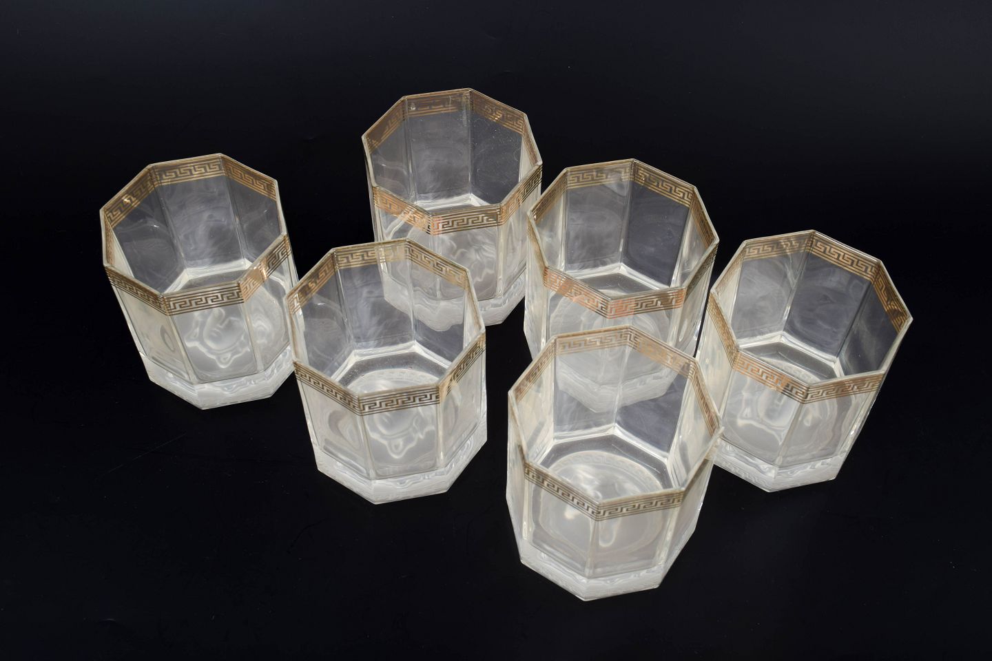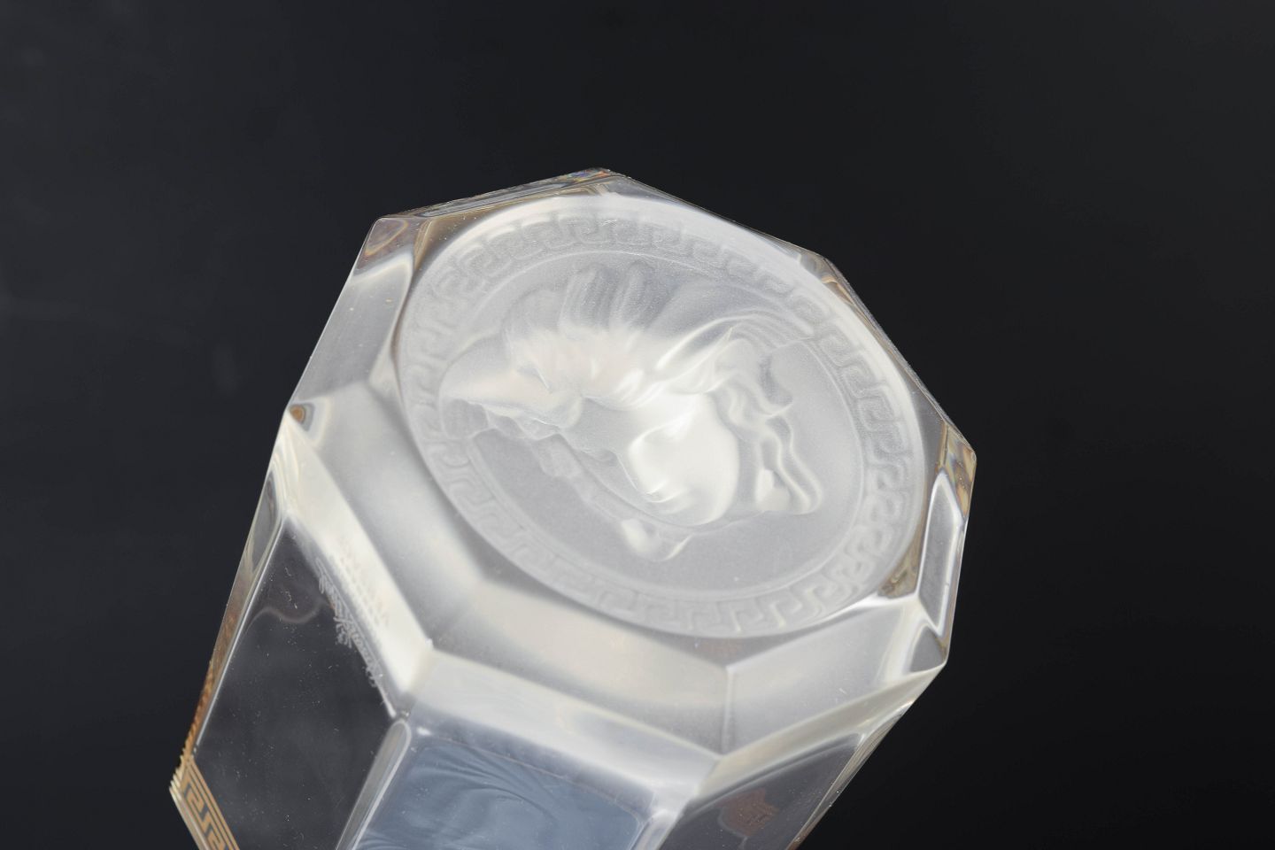 Versace for Rosenthal, set of six whisky glasses "Medusa".Set of six whisky glasses in clear glass featuring the distinctive Medusa motif from the Versace line produced by Rosenthal.