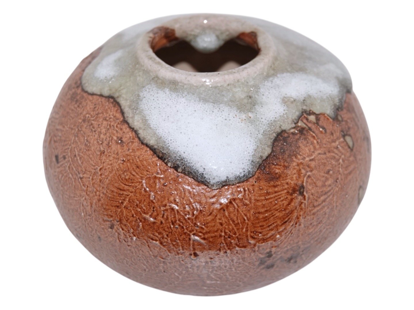 Royal Copenhagen art pottery unique vase with an unusual glaze.Height 8.4 cm., width 10.5 cm.