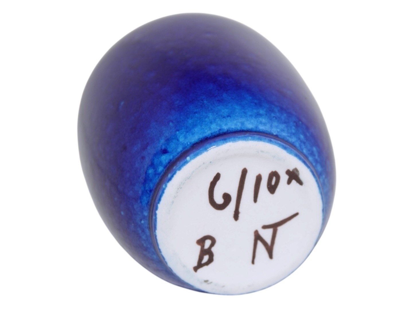 Royal Copenhagen art pottery. Nils Thorsson own color test piece shaped as a small pitcher.Stamped: "G/10X B NT" and made at Royal Copenhagen.