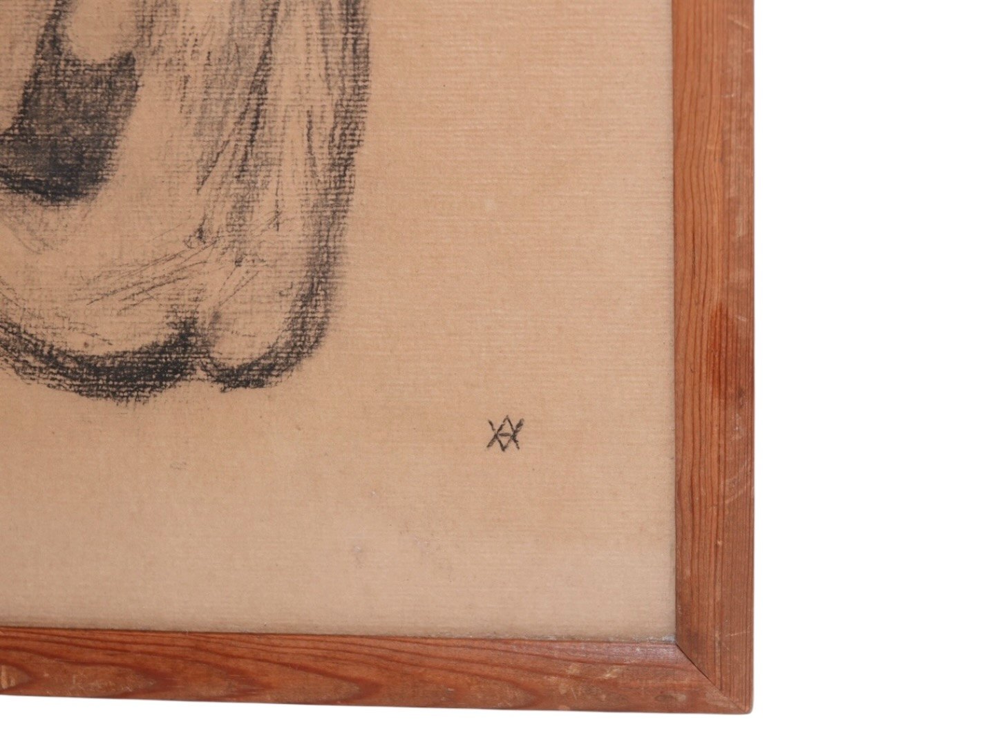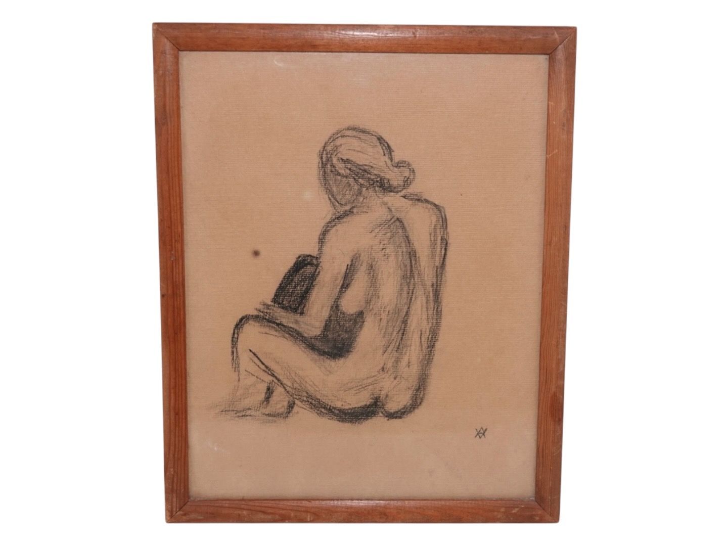 Vibeke Alfelt (1934-1999), early drawing of a nude lady in a wooden frame and behind glass.Vibeke Alfelt was a daughter of Else Alfelt and Carl Henning Petersen