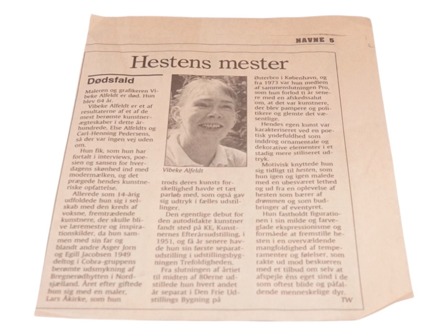 A newspaper clip with obituary comes along.