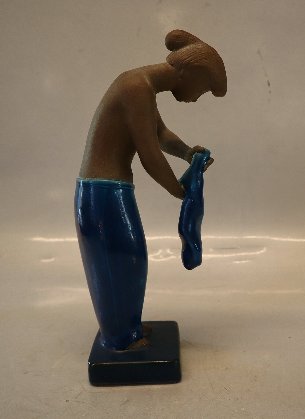 Johannes Hedegaard statue Royal Copenhagen Stoneware. 21424 RC "Martha" Woman with clothes 26 cm, JH, December 1956 In nice and mint condition Turquoise glaze and unglazed terracota / Chamotte Dealer