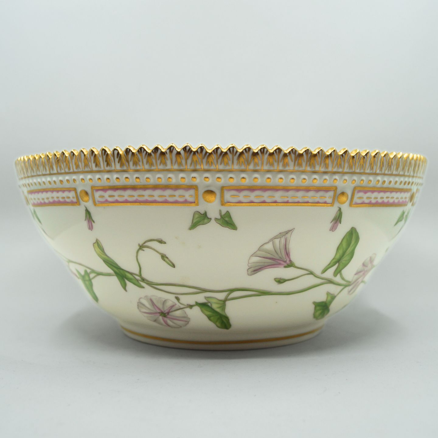 Royal Copenhagen, Flora Danica porcelain; Large bowl no. 3555. Decoration: Convalvulus arvensis L. Decorated in colours and gold with flowers.