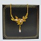 Jean Larsen; A necklace of 18k gold, leaves set with a white pearls. Pendant h. 3,8 cm w. 5,2 cm. Necklace l. 42 cm. Jean Larsen, Denmark.